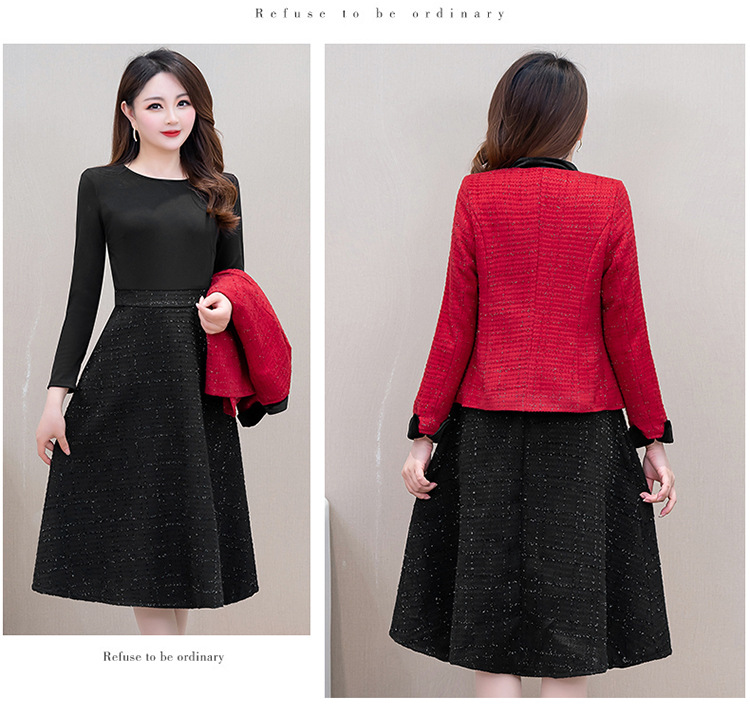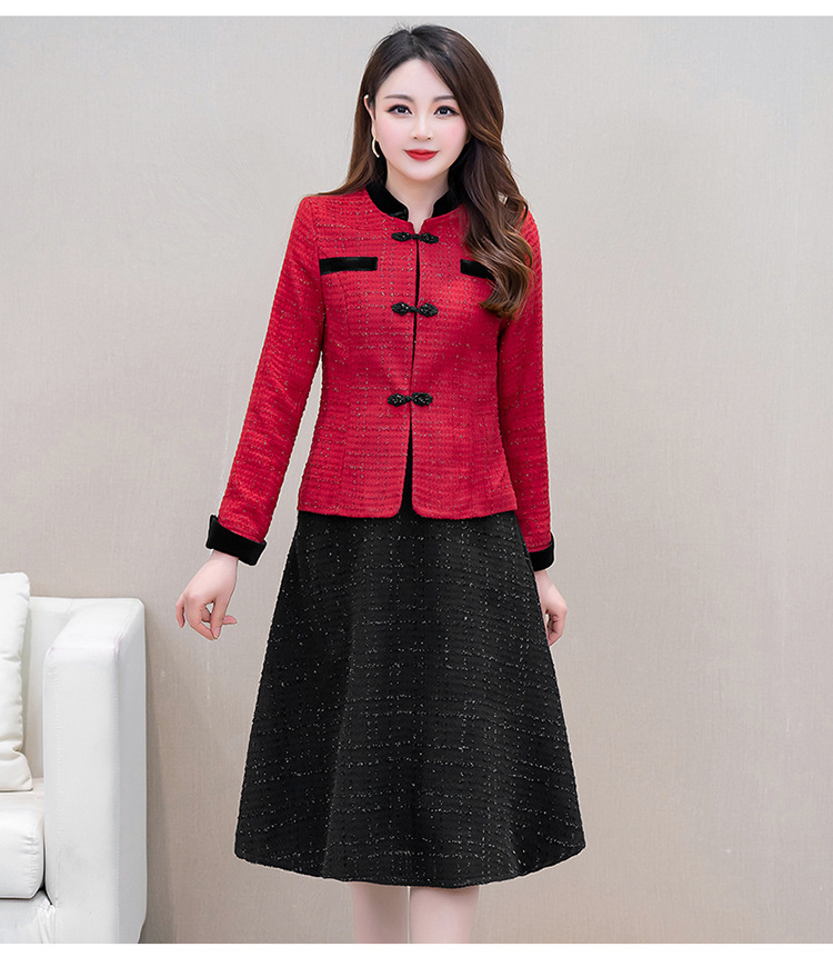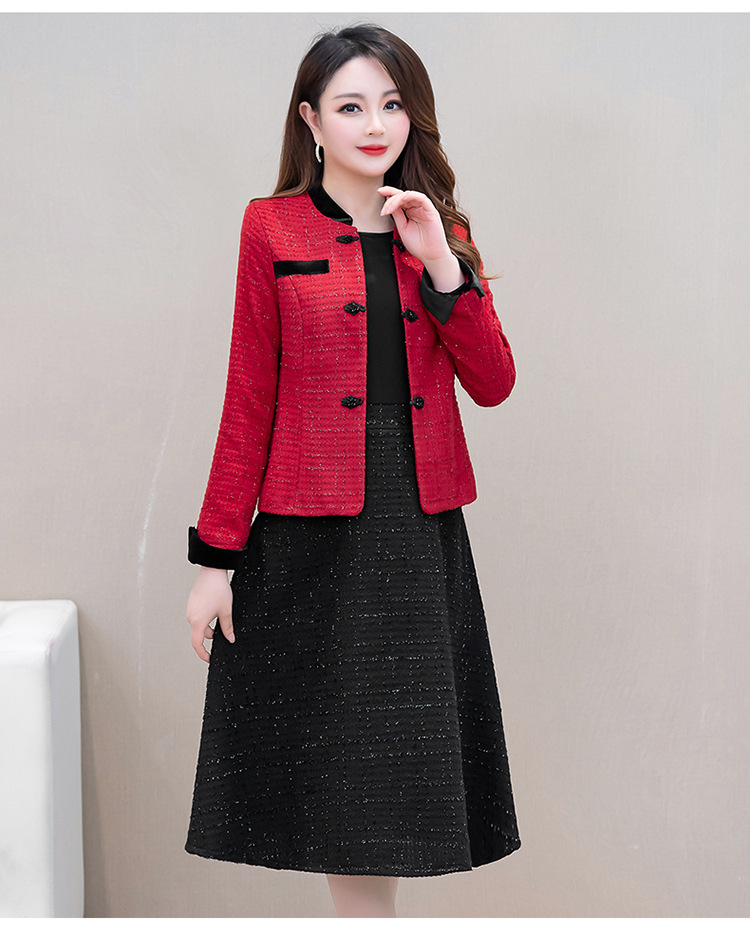 QYM 25CQD2506小香短款风外套两件套中长款A字裙套装