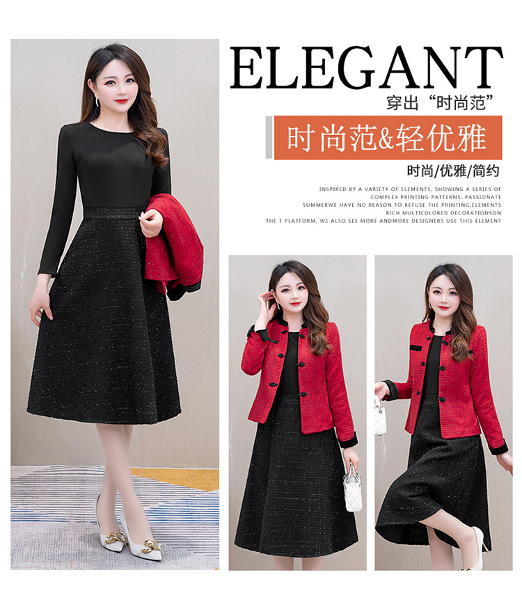 QYM 25CQD2506小香短款风外套两件套中长款A字裙套装 商品图4