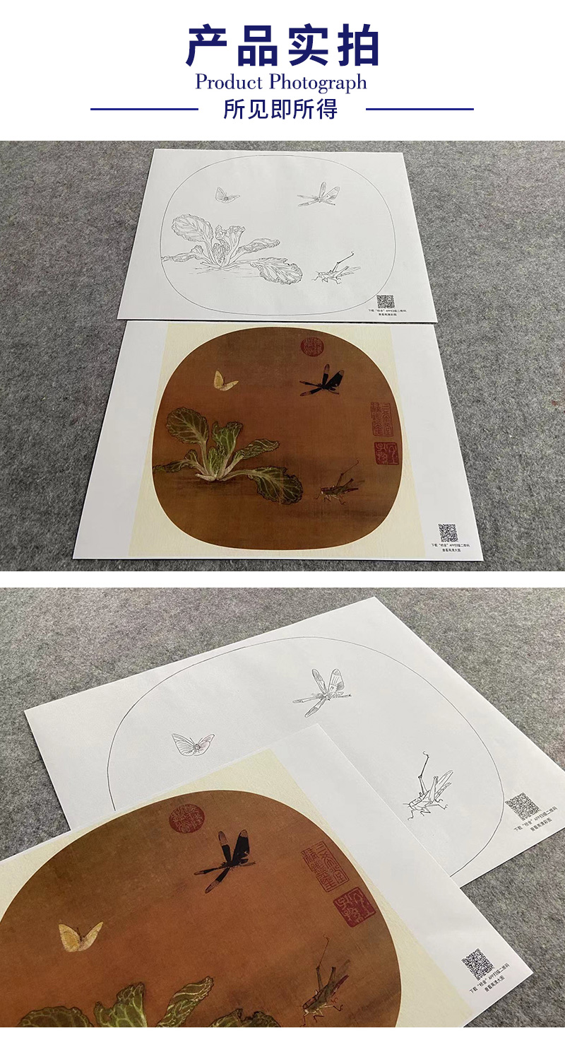 【大彩图】许迪工笔画白描底稿宋画小品《野蔬草虫图》白菜蜻蜓临摹勾线花鸟线稿GH26