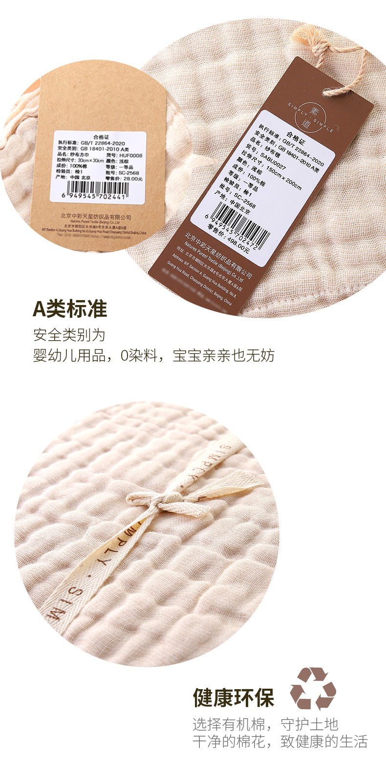 今天我们推荐一款有机12年的棉产品品牌——素道,母公司北京中星它拥有自己的有机彩棉种植基地,从源头把控。除了有自己的技术团队,研究彩棉种植以外,还有自己的有机棉加工车间,生产有机棉半成品(有机棉纱线、有机彩棉面料等),和终端应用有机棉产品(衣物、寝具等)。产品全线获得获得全球、瑞士、欧盟、美国、中国五项有机认证。