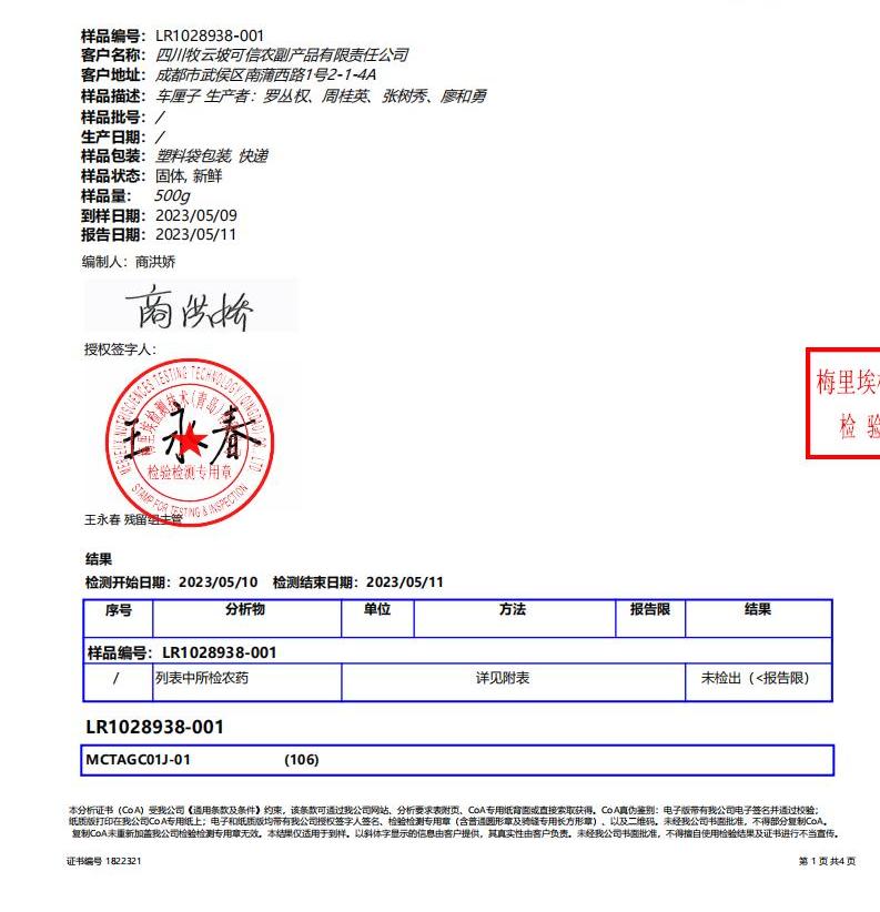 在上架之前,几个合作农户的樱桃都做了260+农残检测,无检出。