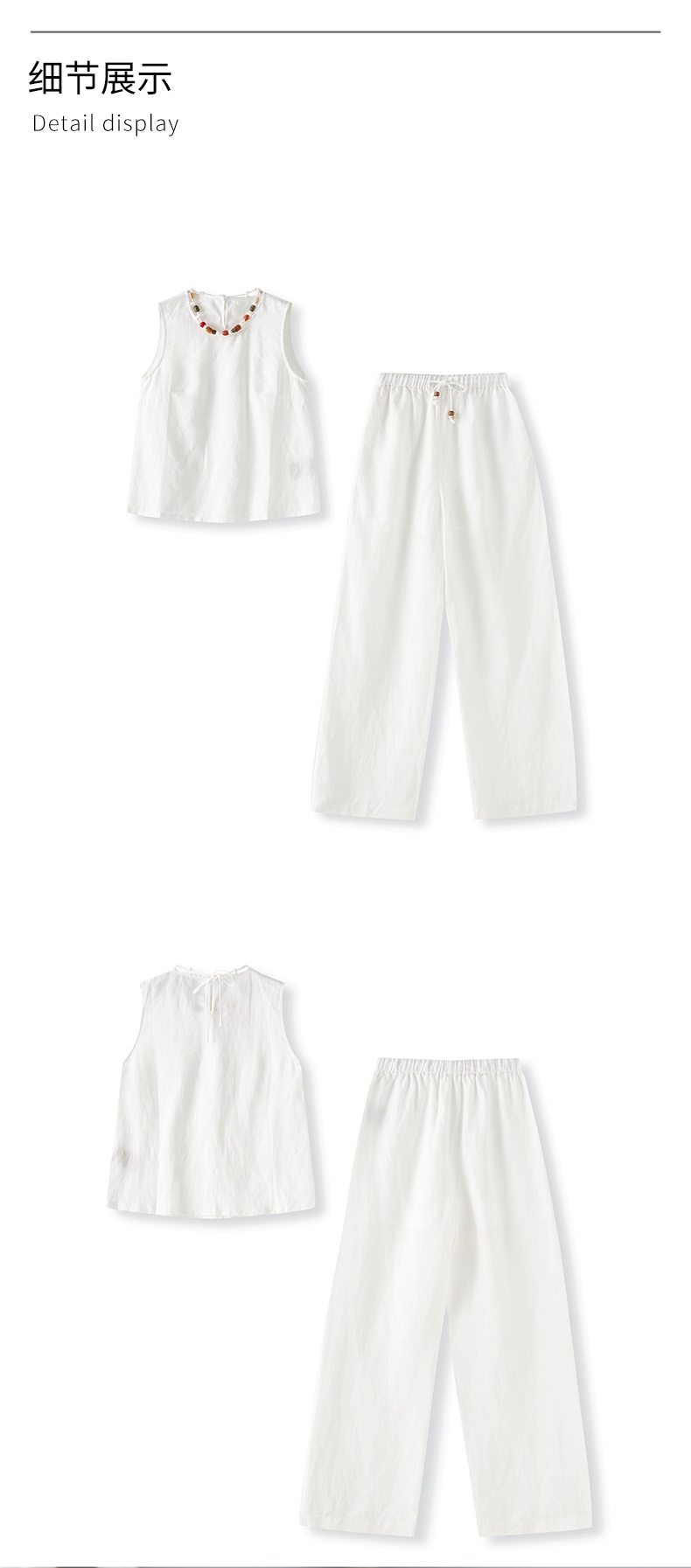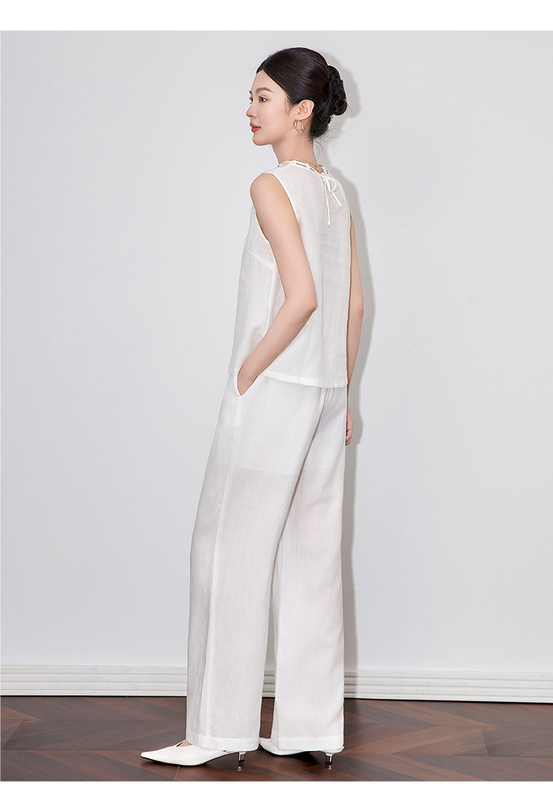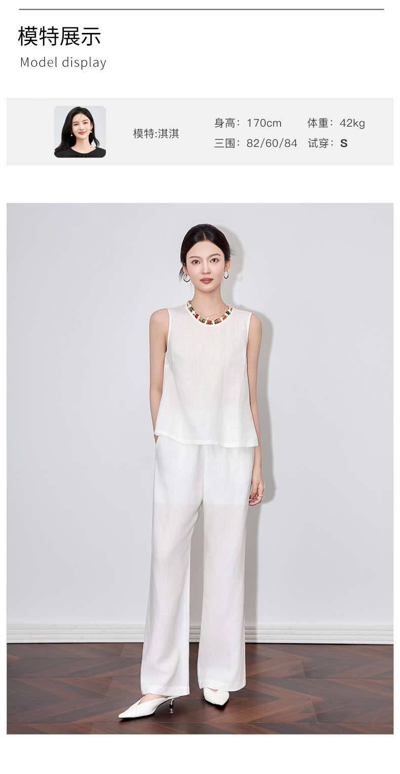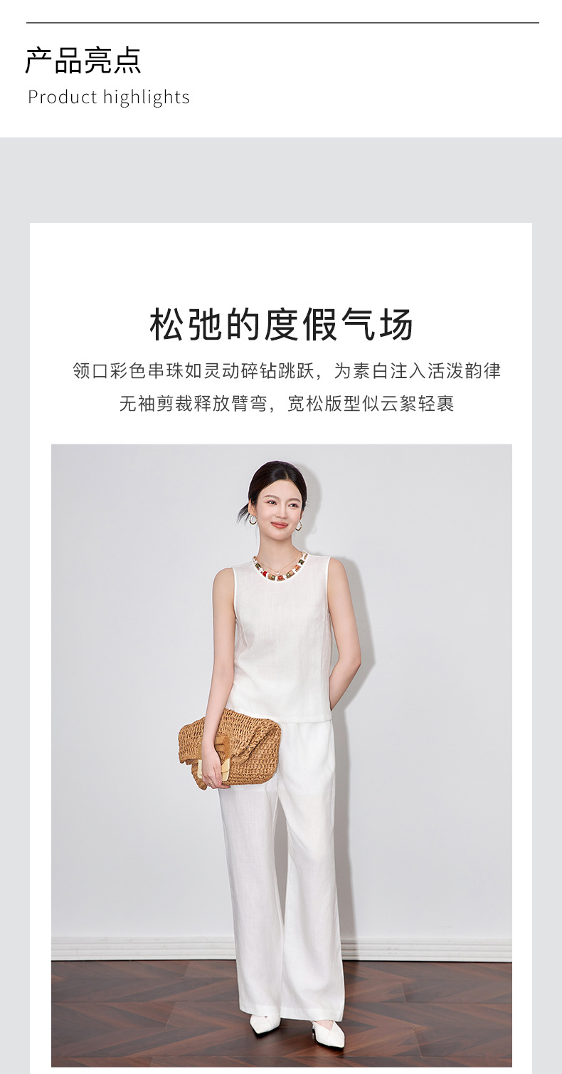 「高货wl」全新升级【铂金会员441/天猫599/差价158】(99051)洛诗琳老钱风松弛感亚麻串珠领背心高腰直筒阔腿裤两件套