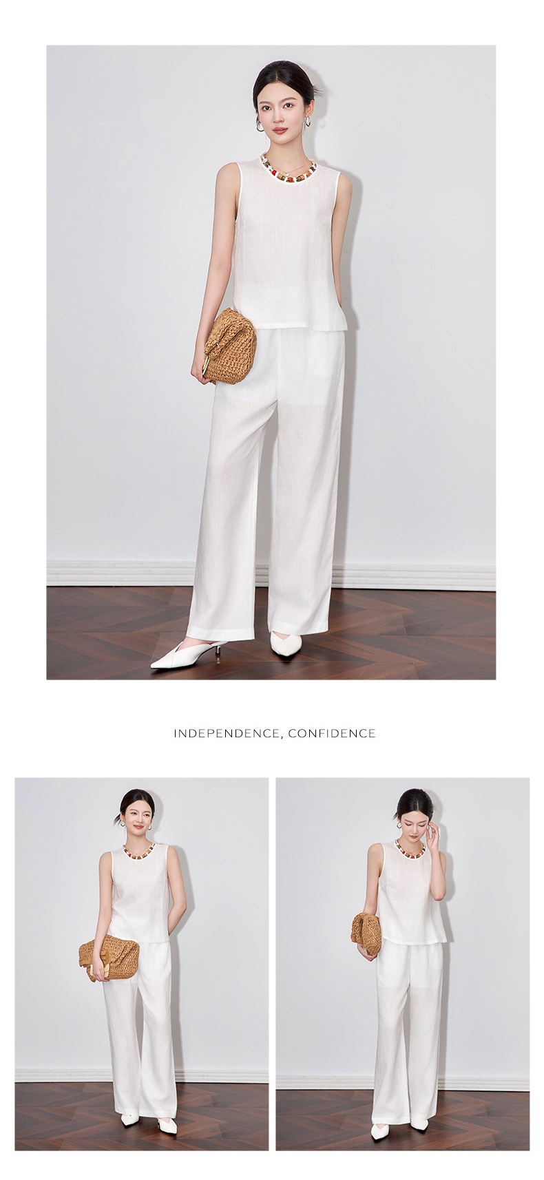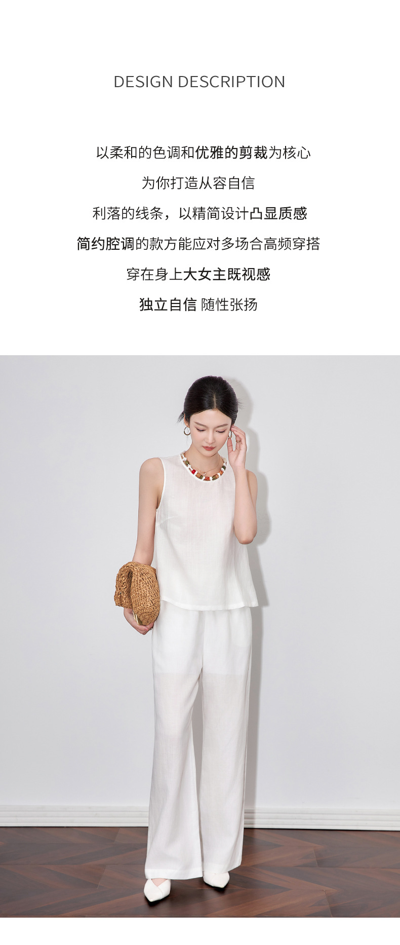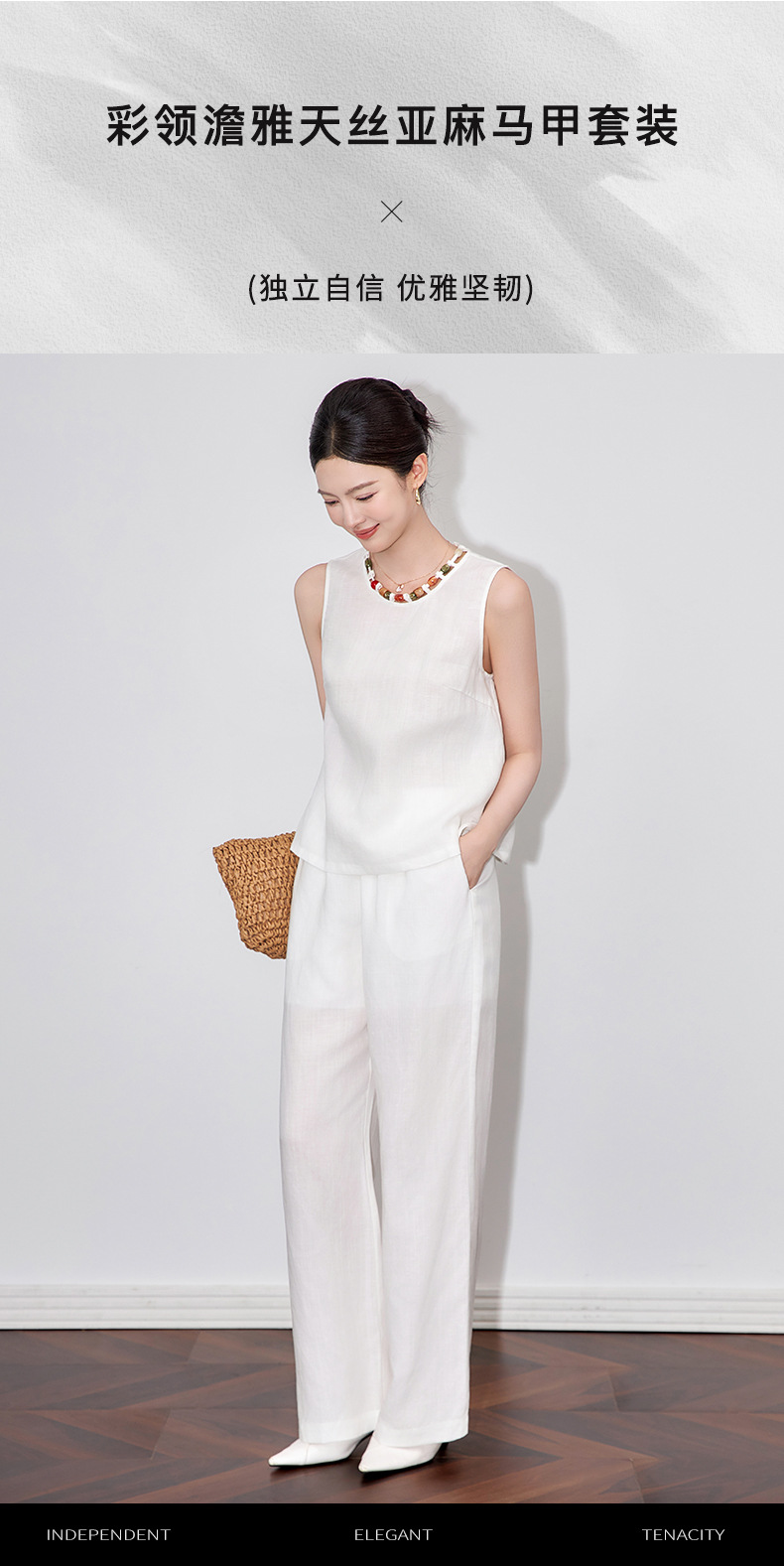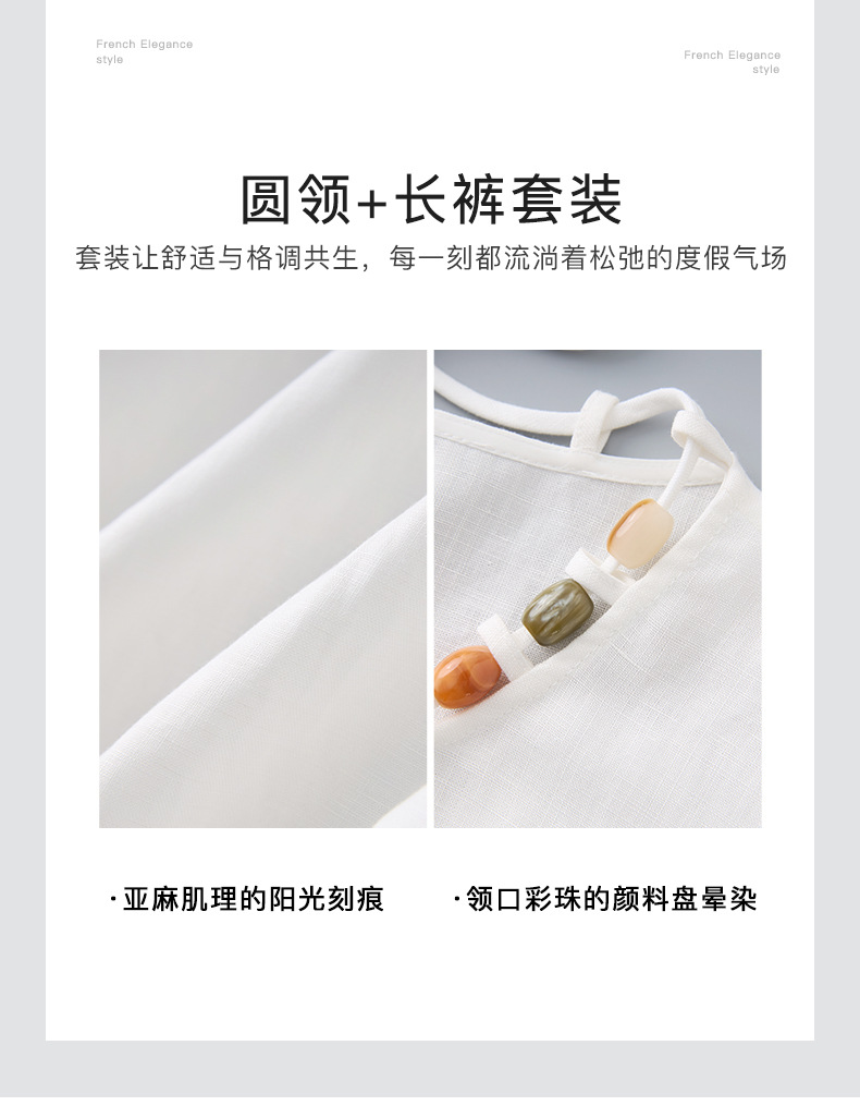 「高货wl」全新升级【铂金会员441/天猫599/差价158】(99051)洛诗琳老钱风松弛感亚麻串珠领背心高腰直筒阔腿裤两件套
