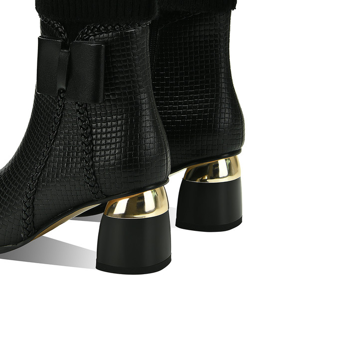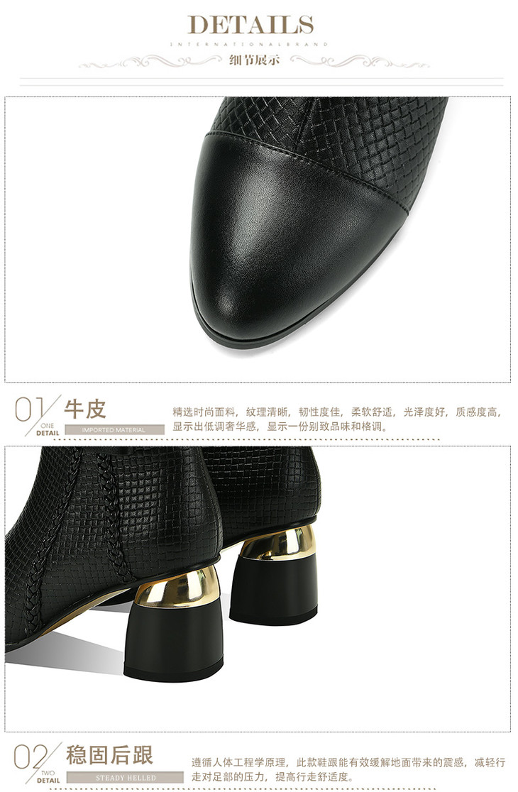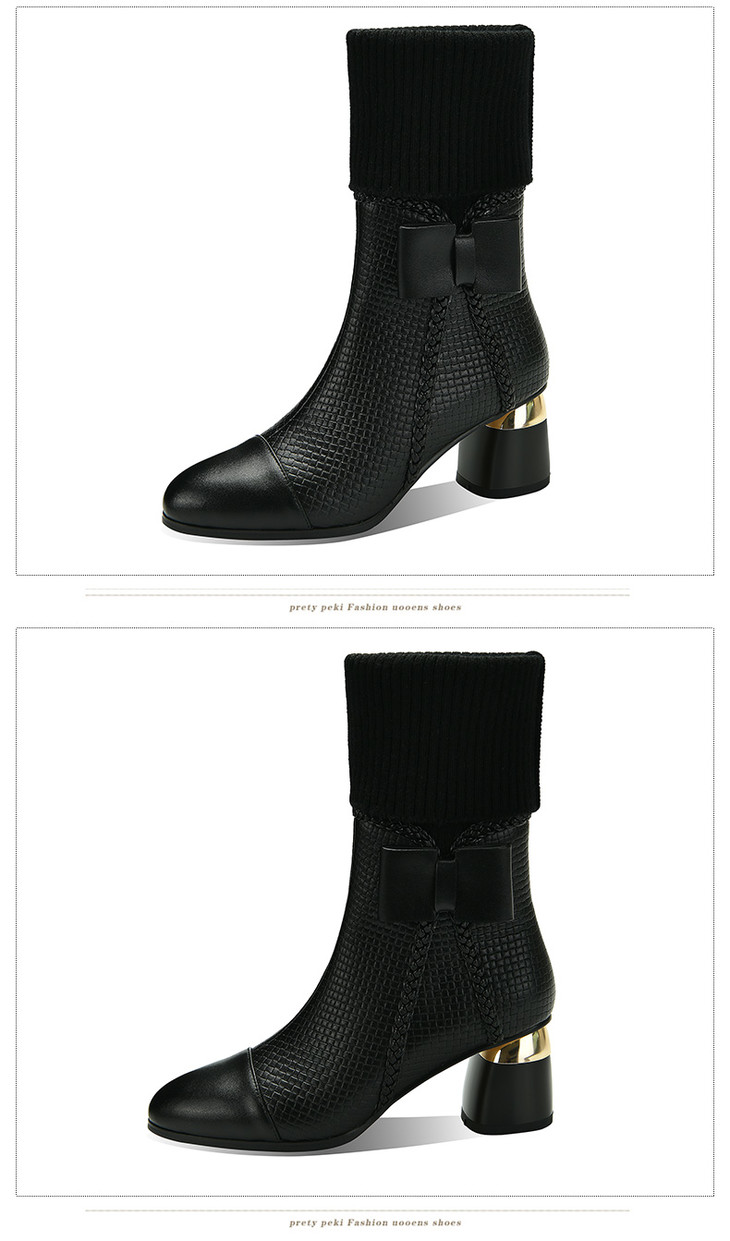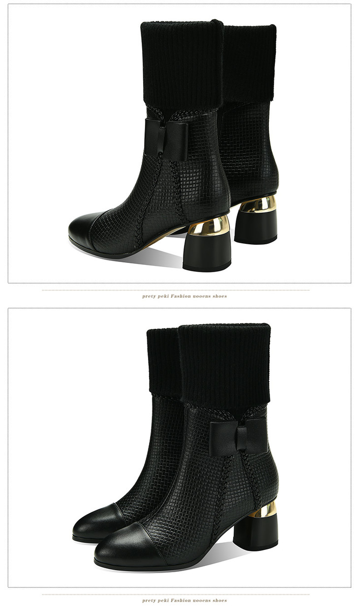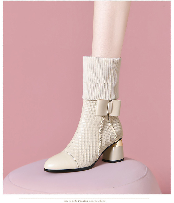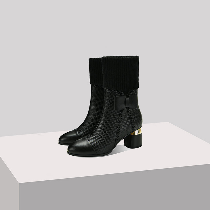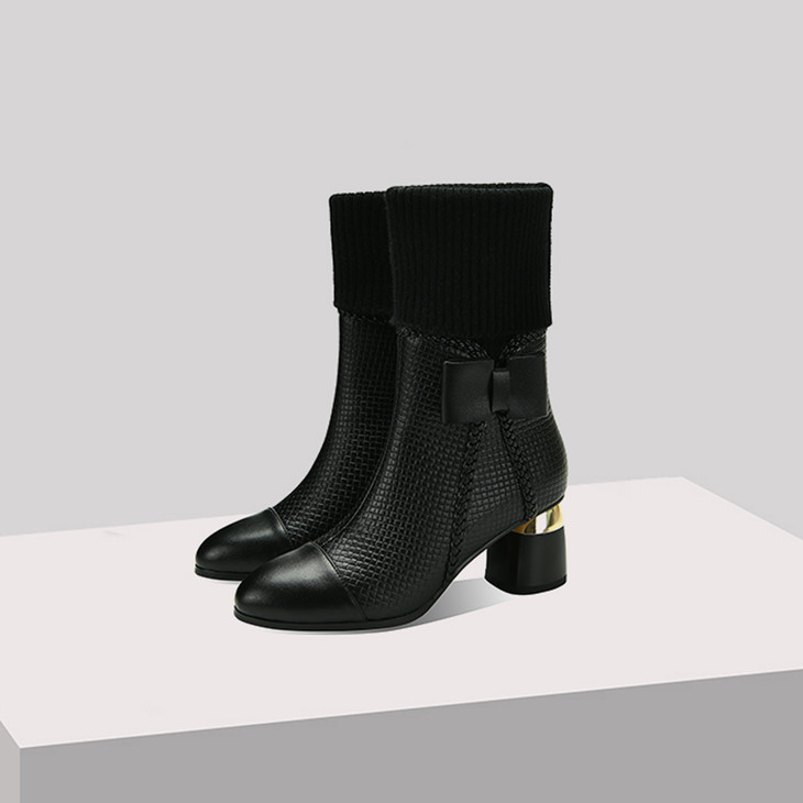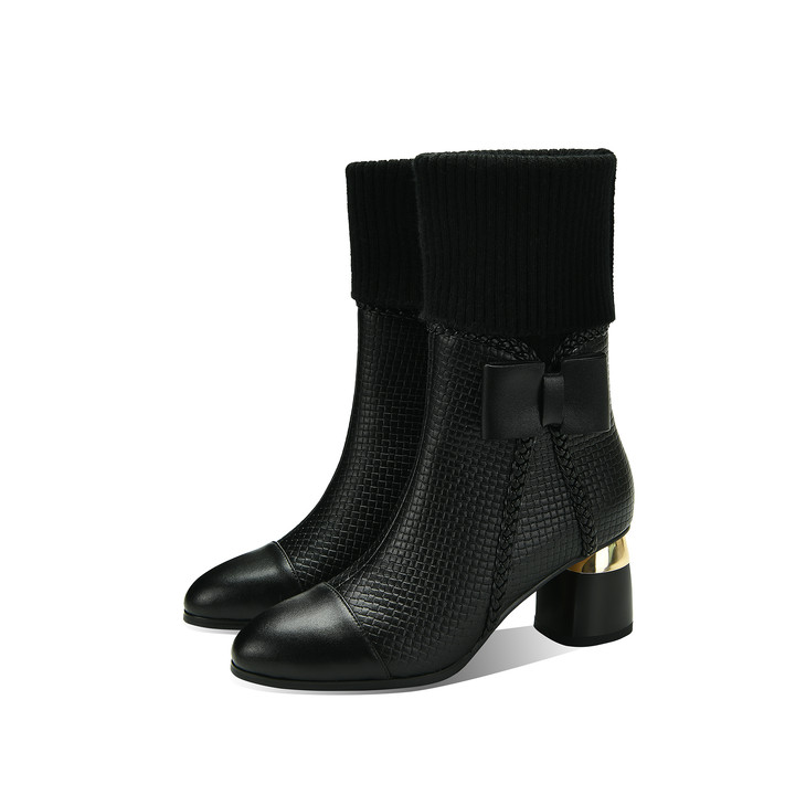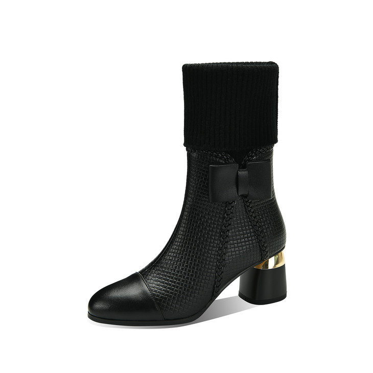 【预售5天】米白色短靴女冬季新款加绒黑色针织毛线中筒靴粗跟中跟靴子女SY&885-a28