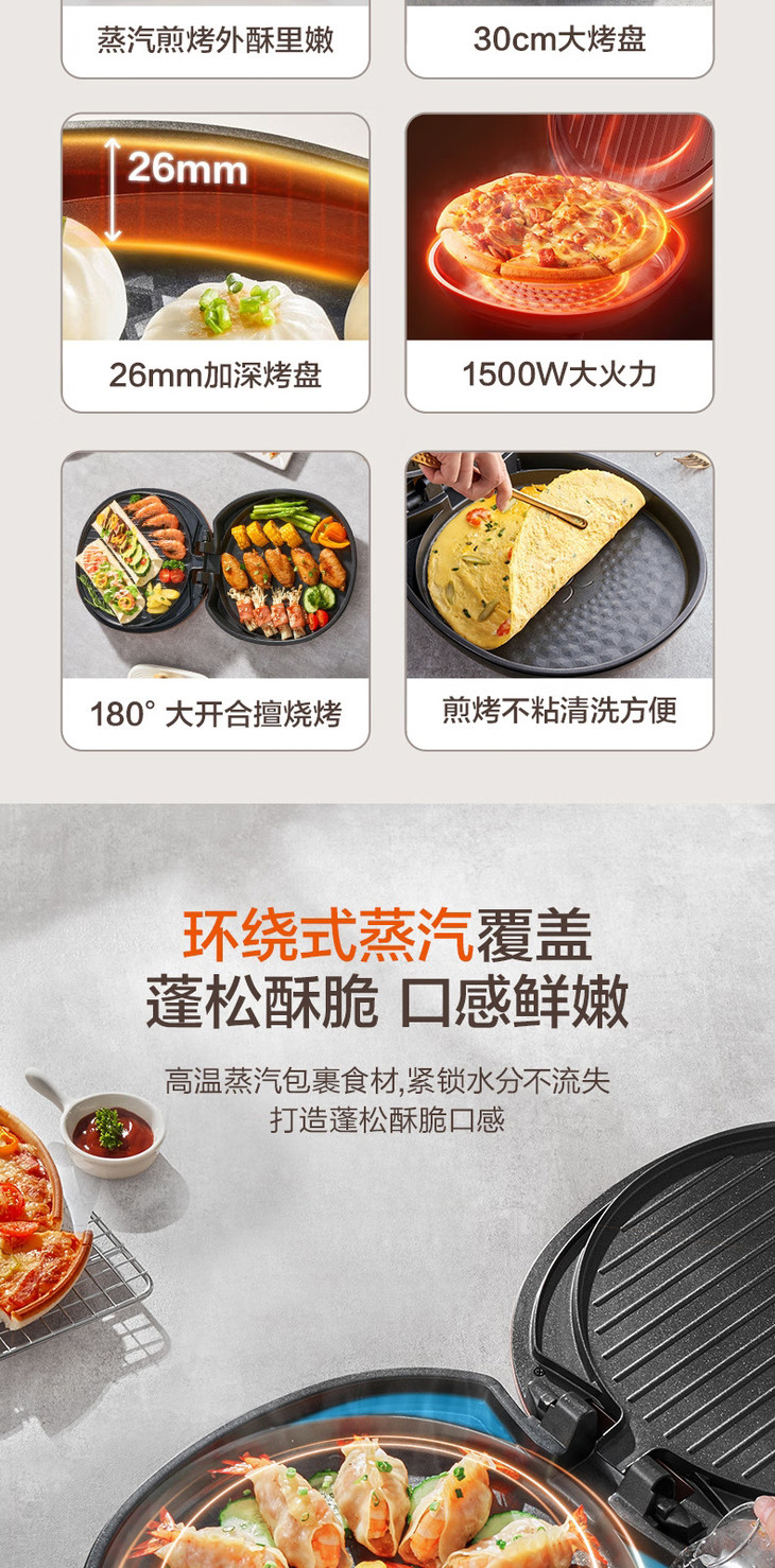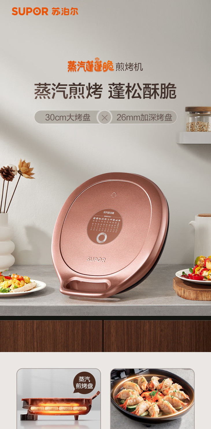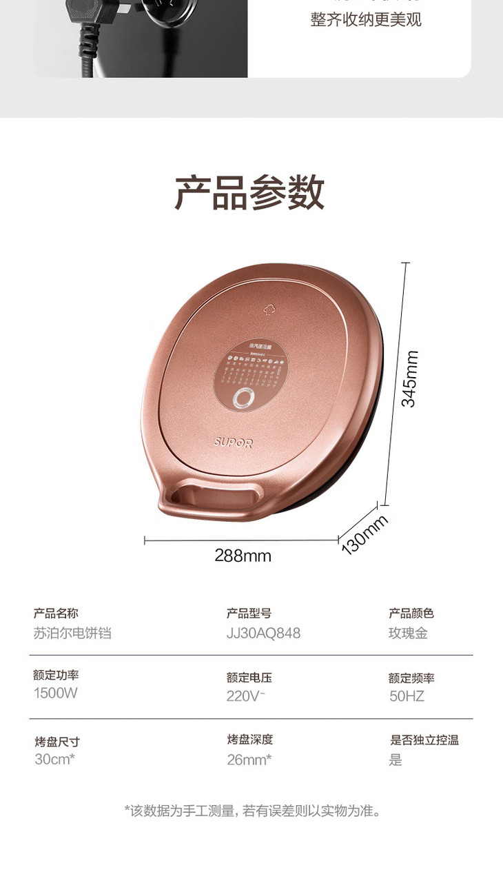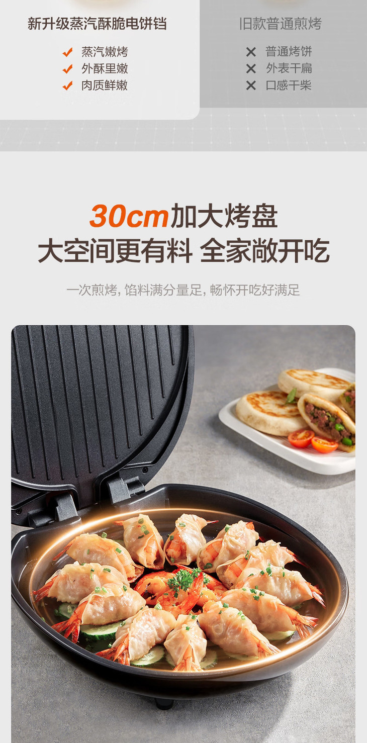 【苏泊尔】电饼铛30CM大烤盘双面独立加热薄饼煎烤机烙饼机 JJ30AQ848