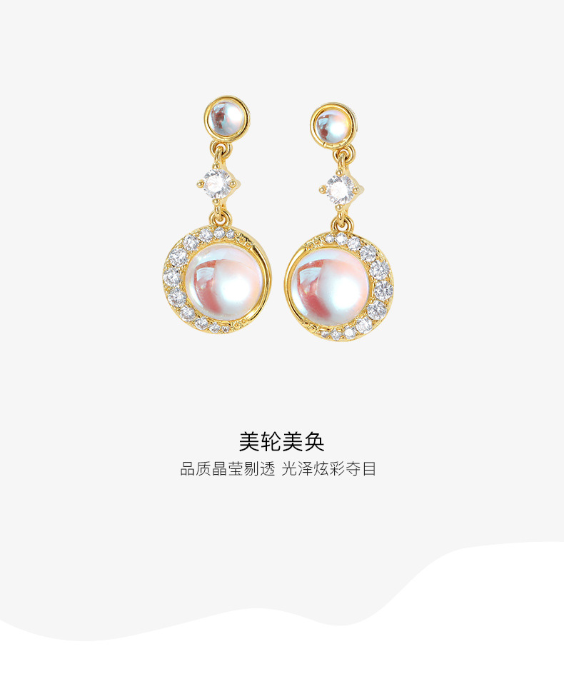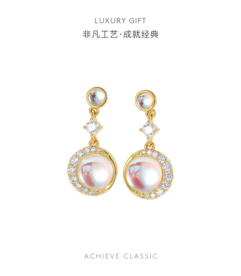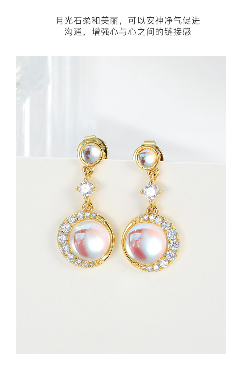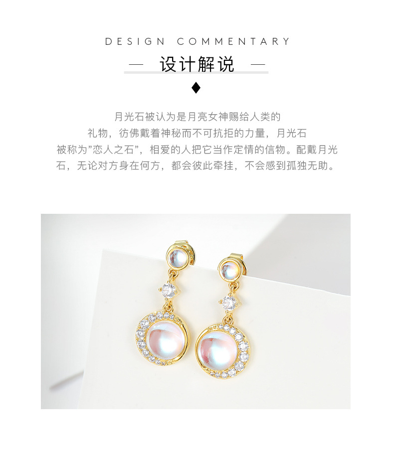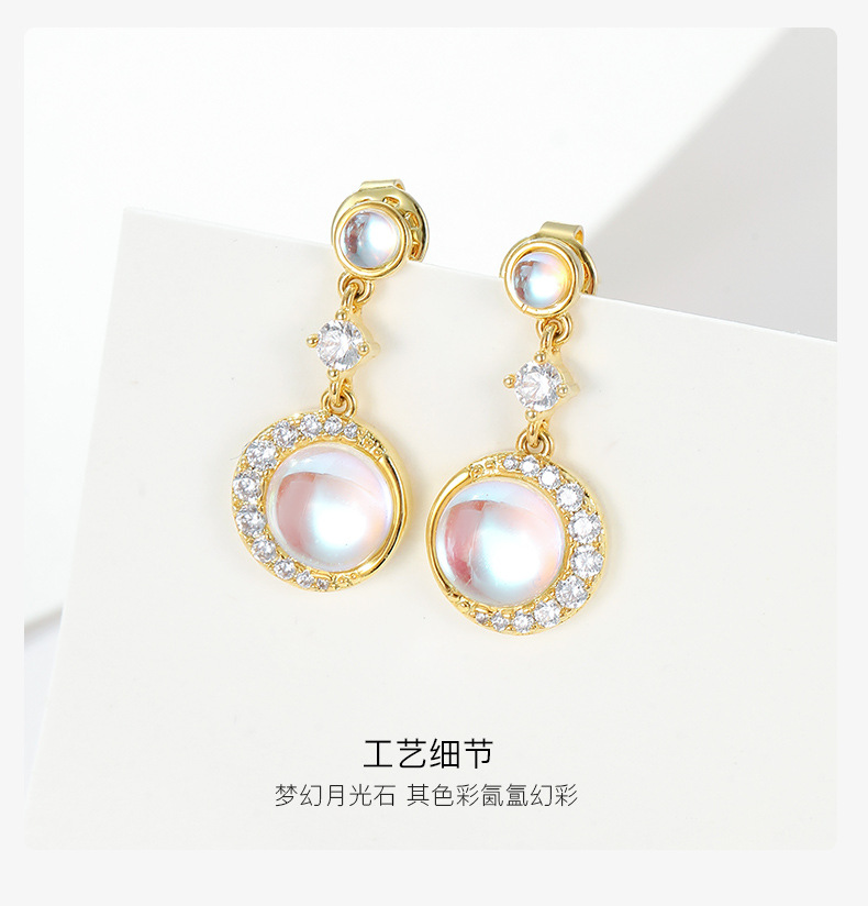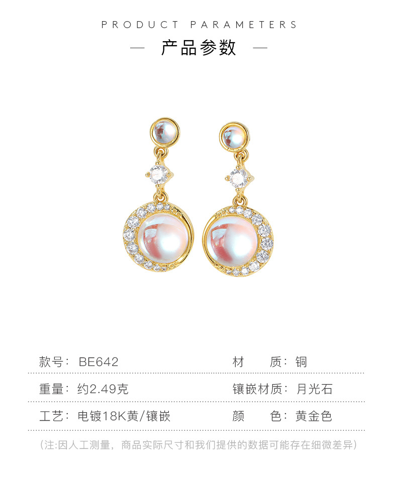 【预售3天】新款小众个性气质高级感月光石耳环铜饰品耳针耳坠BE642