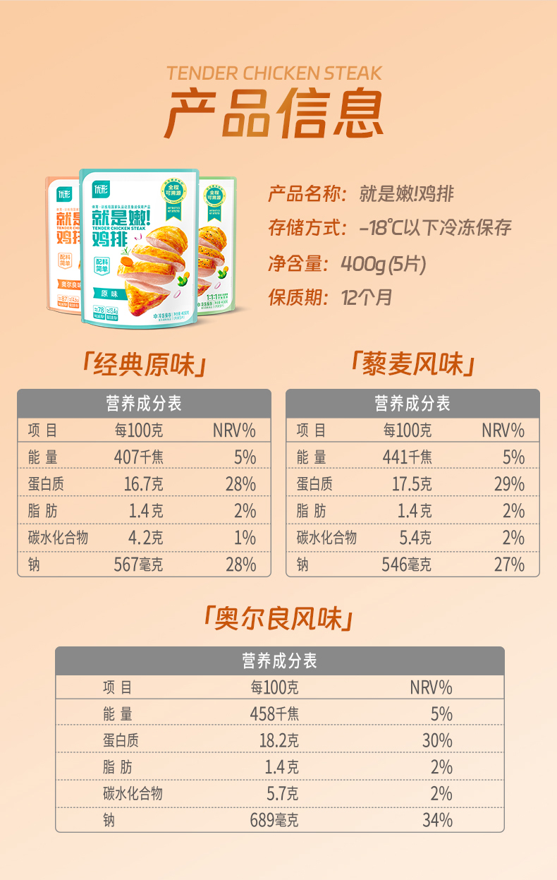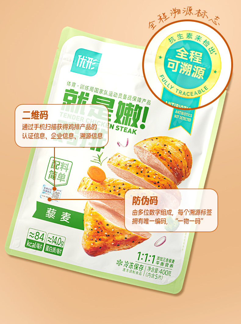 【优形】全程可溯源控抗就是嫩鸡排400g量贩装
