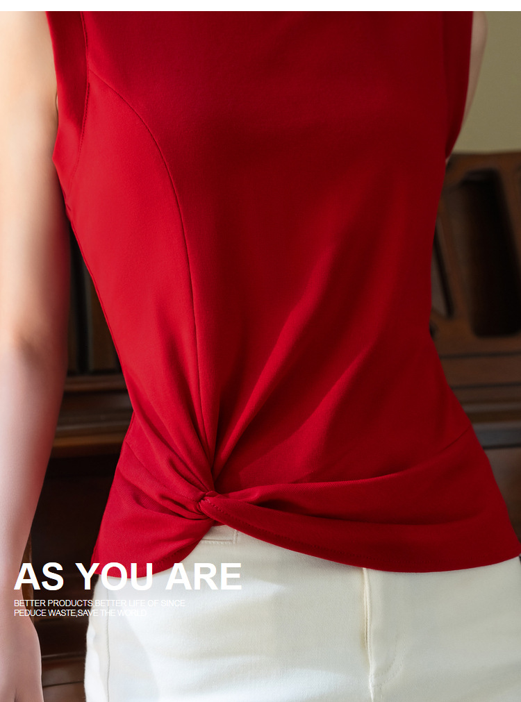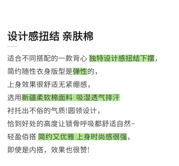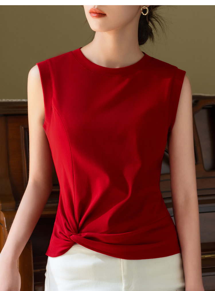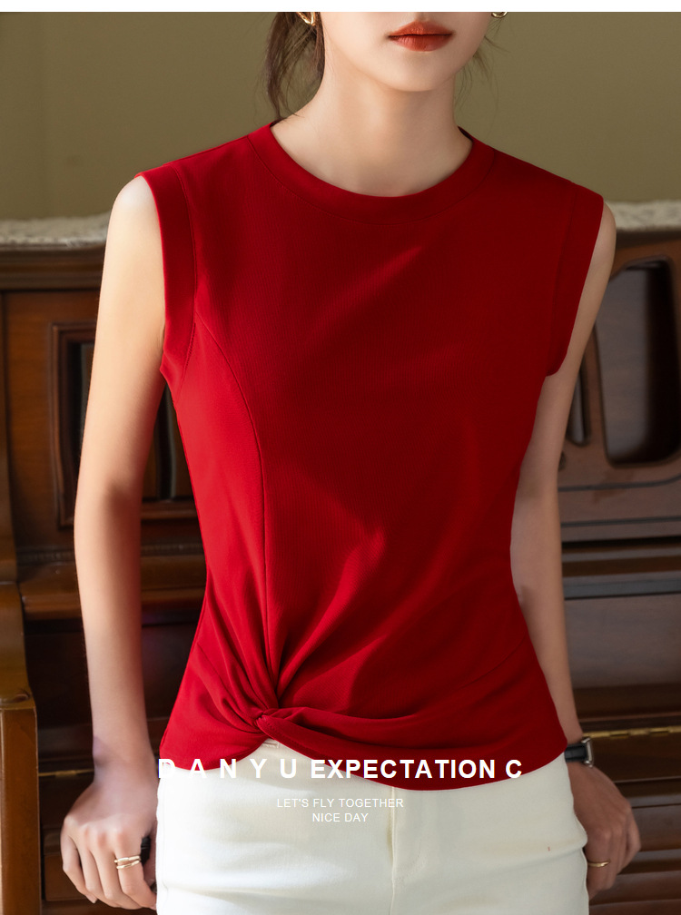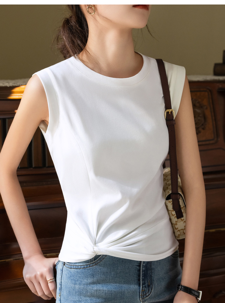 吊带背心女夏,新款女装纯色圆领棉t恤设计感扭结收腰无袖上衣SG-X3C0174