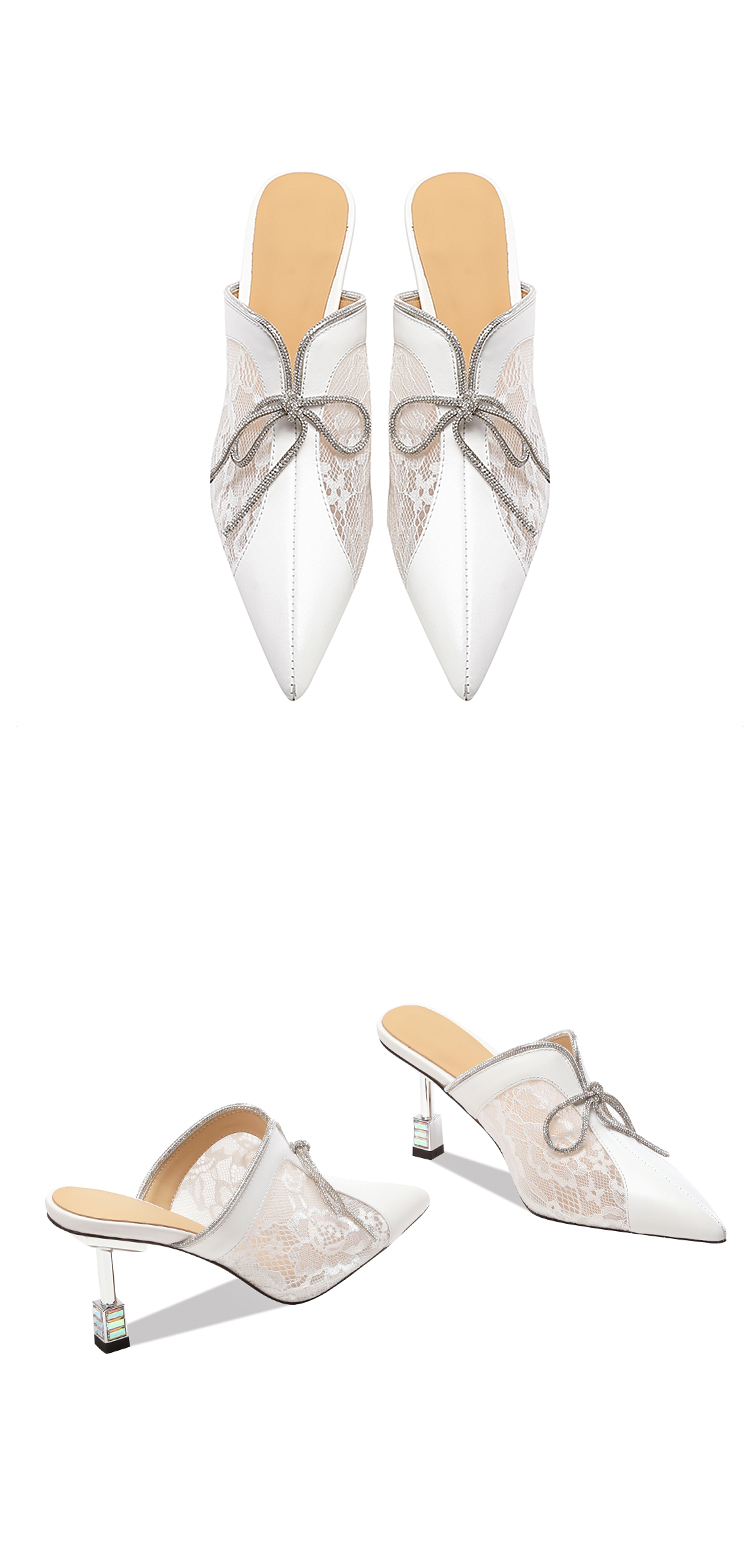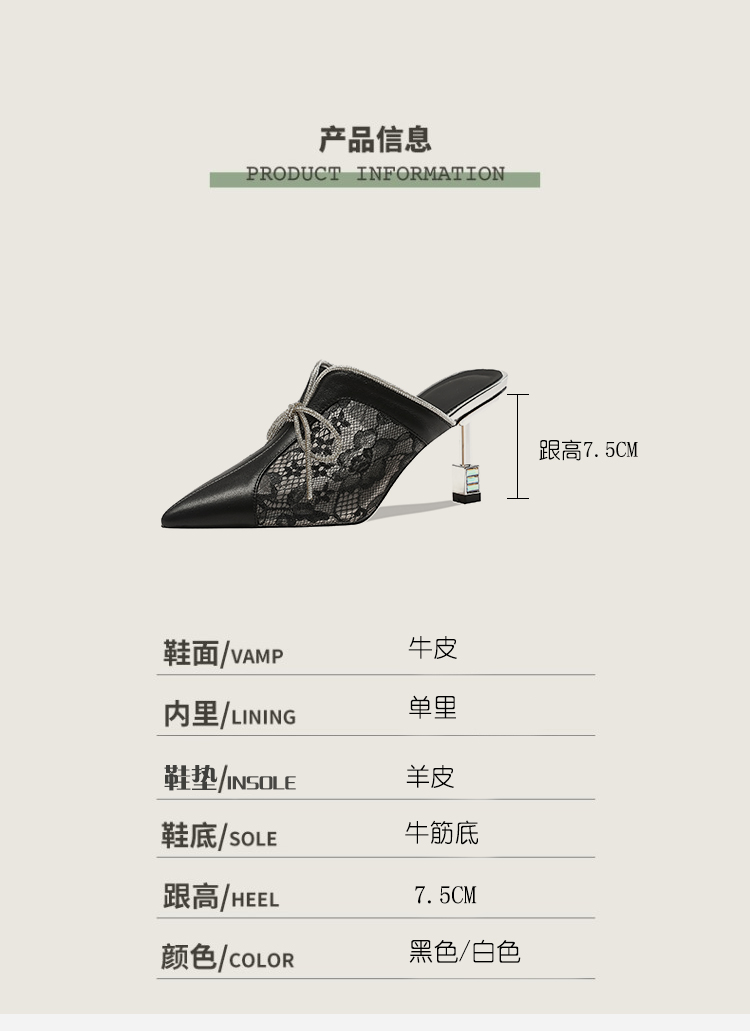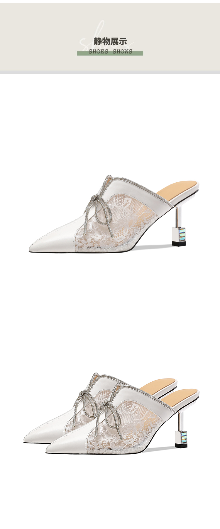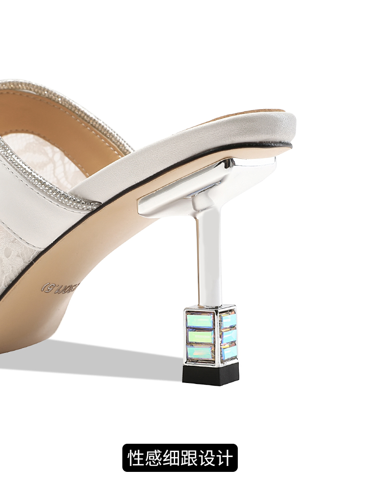 夏季百搭,水钻蕾丝真皮透气包头凉拖YLY-7883-3