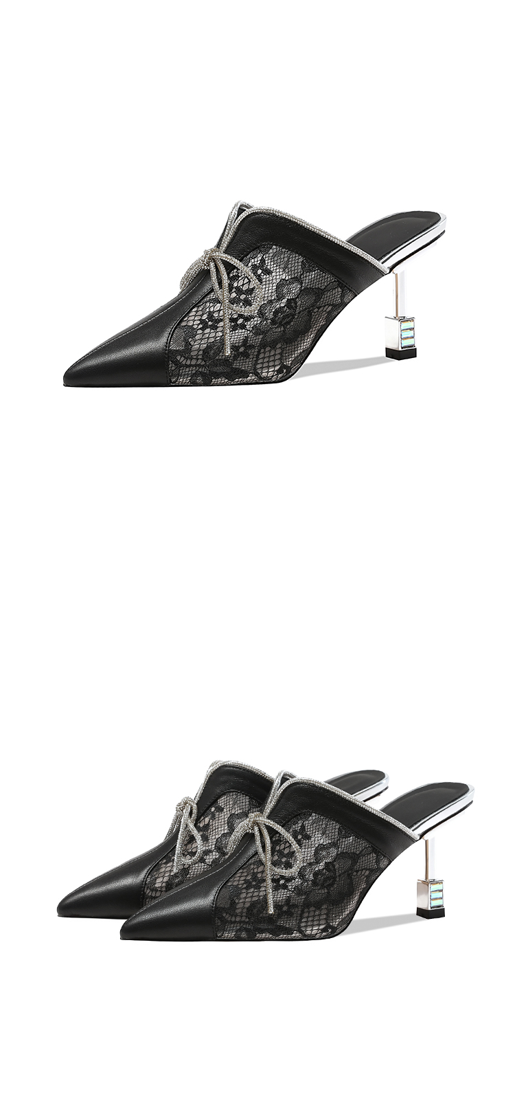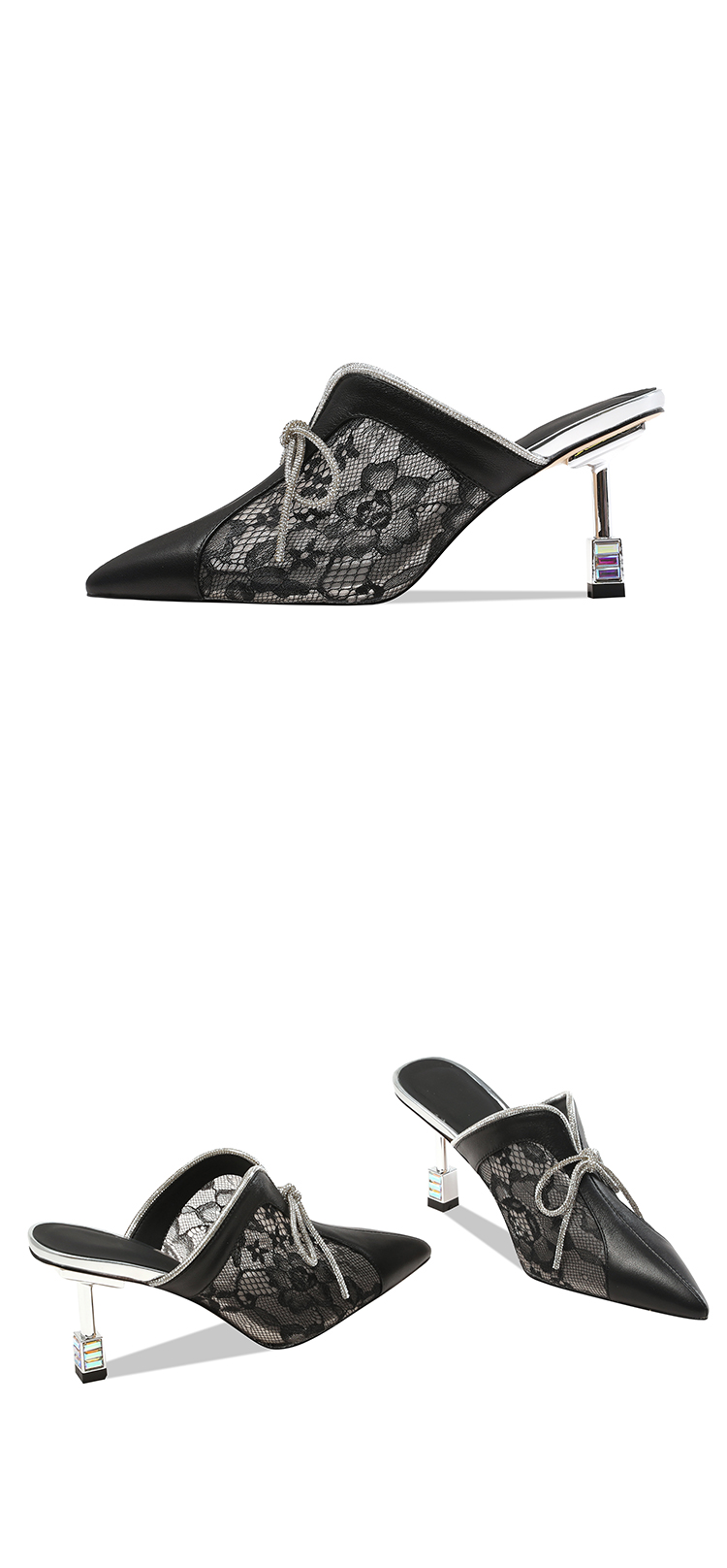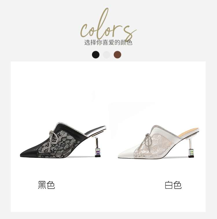 夏季百搭,水钻蕾丝真皮透气包头凉拖YLY-7883-3