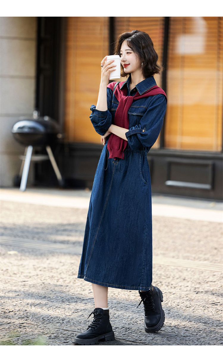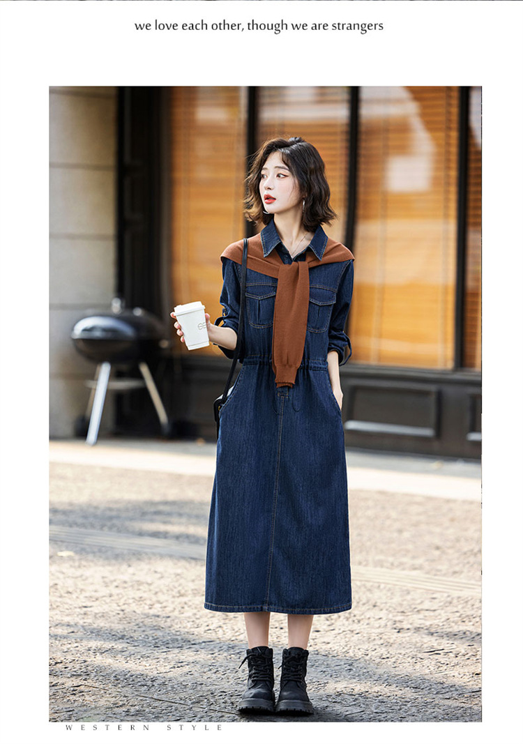 超好看披肩牛仔连衣裙长袖新款时髦潮流裙子EBDU926A