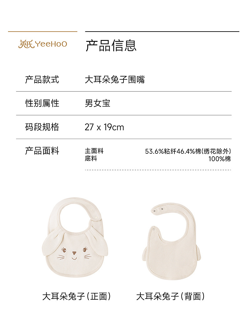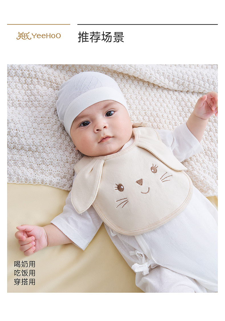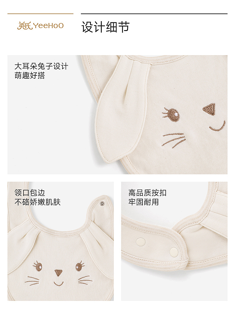 【精梳棉】英氏儿童口水巾四季可用宝宝围嘴大耳朵兔子围嘴27X19cm可爱