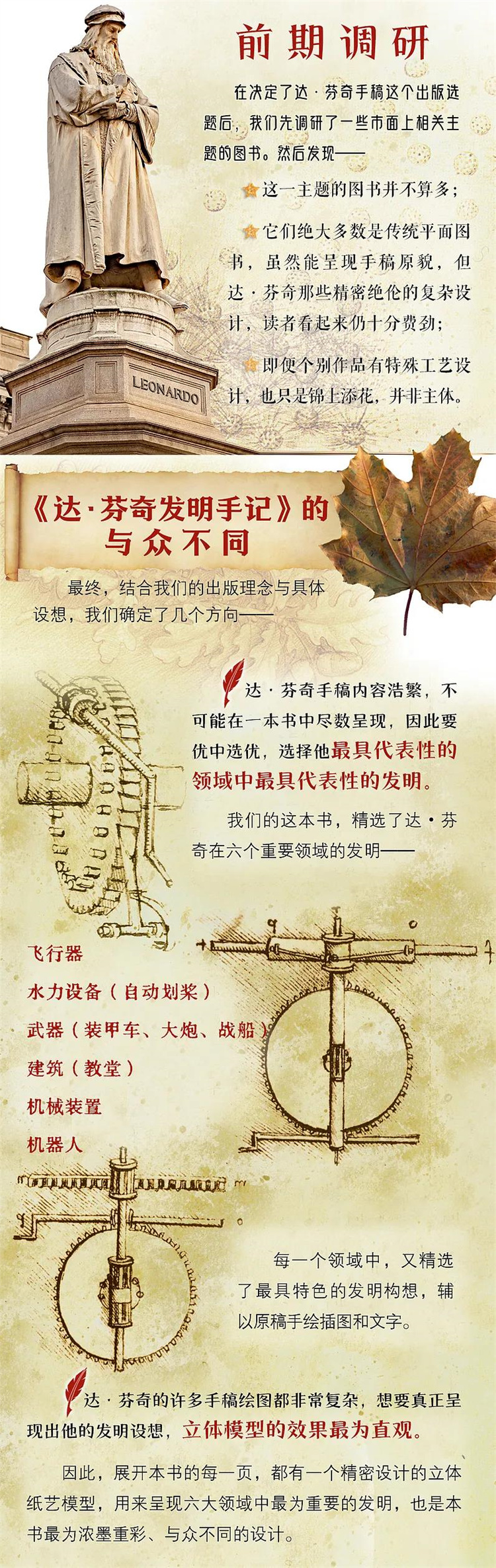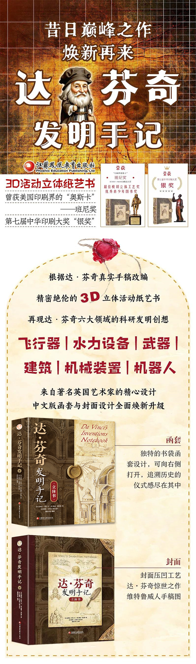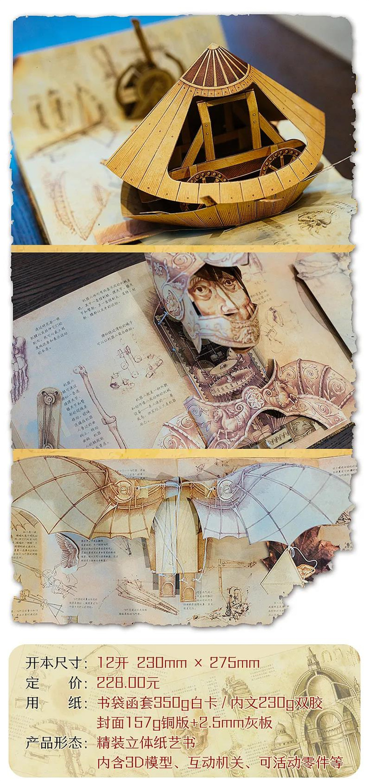 达·芬奇发明手记 科普立体书 3d科普手绘立体书学生礼物翻翻机关书百科书 收录众多达芬奇手绘图 江苏凤凰教育出版社