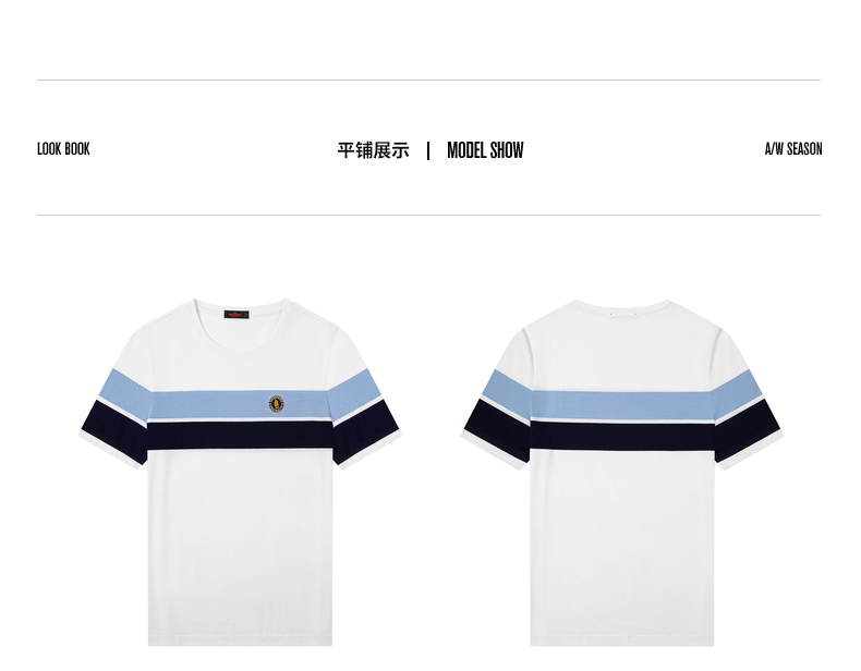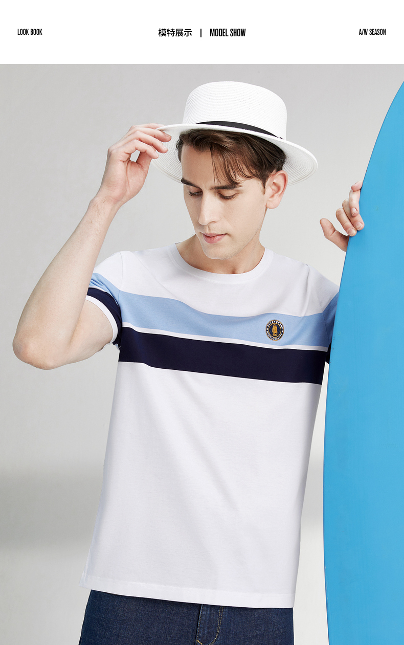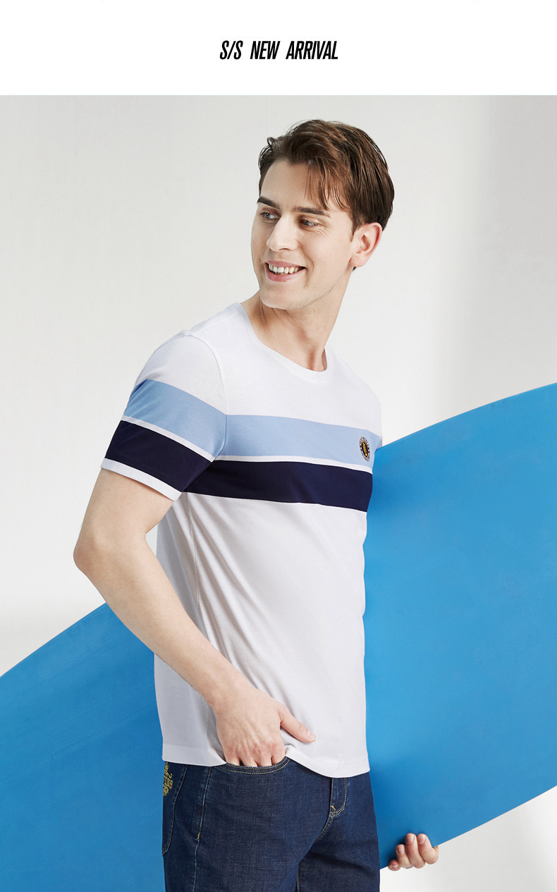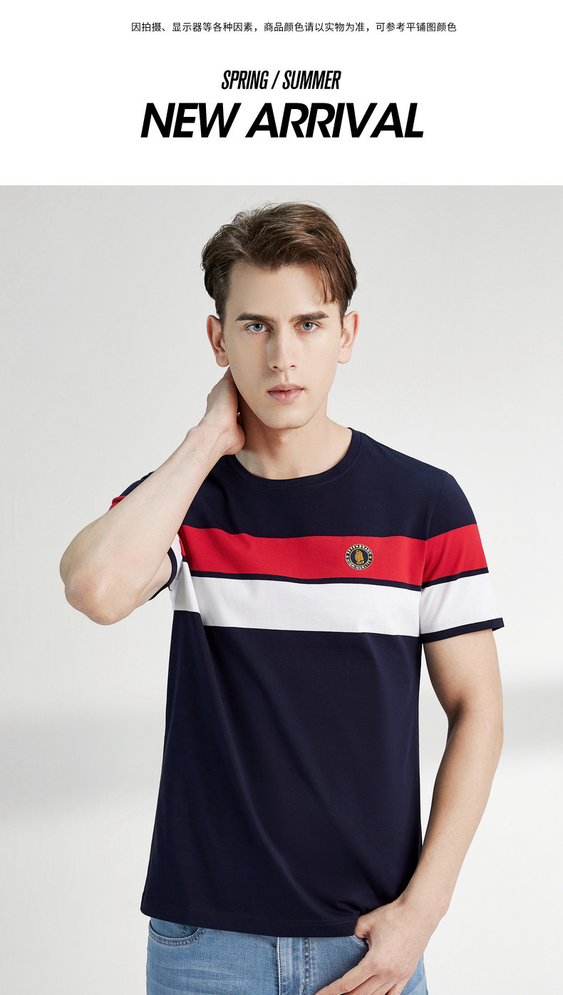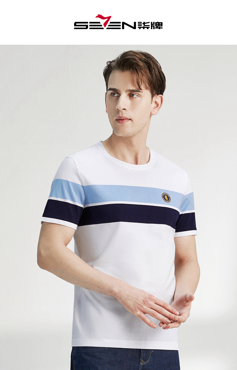 柒牌男装短袖t恤夏季薄款时尚休闲中青年圆领撞色条纹体恤衫 122T71080