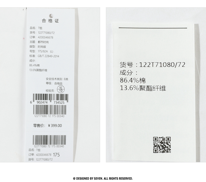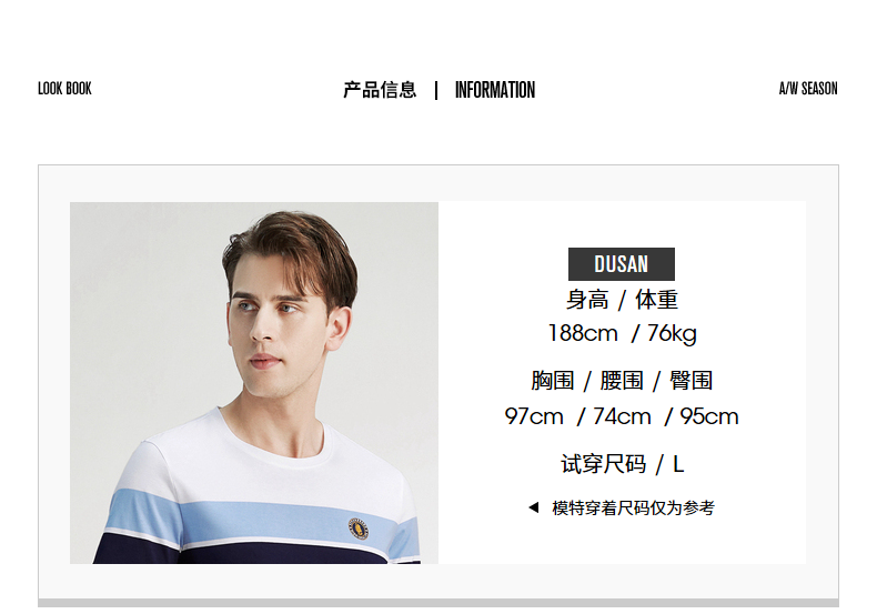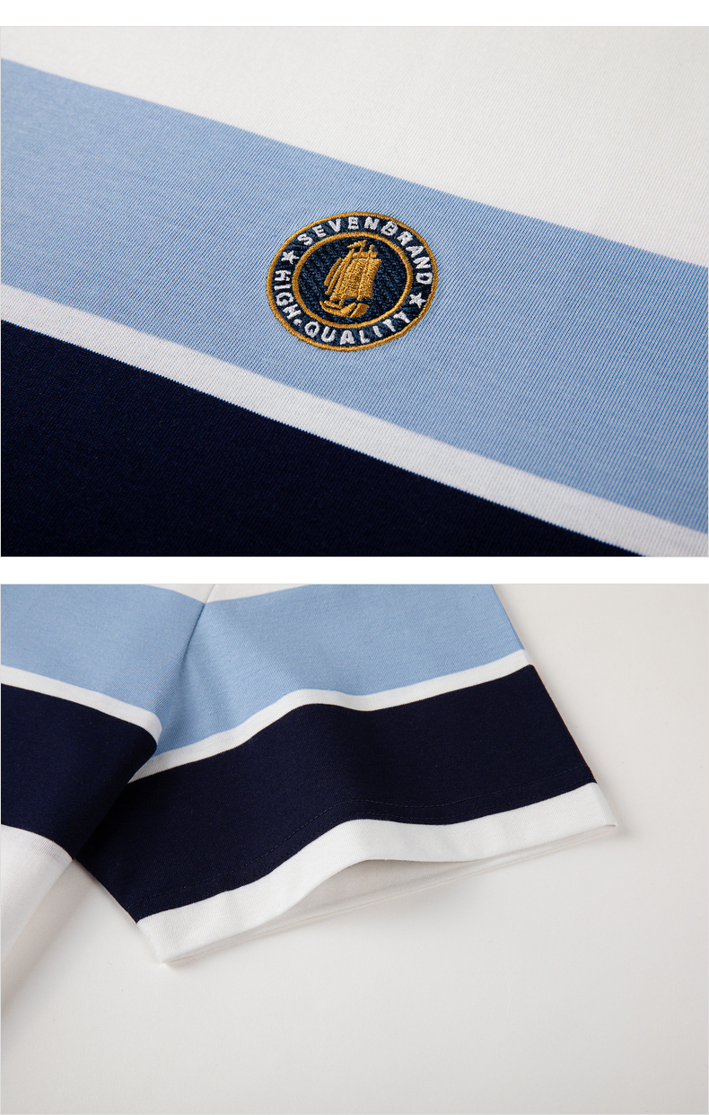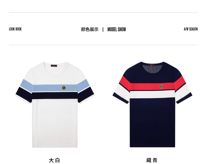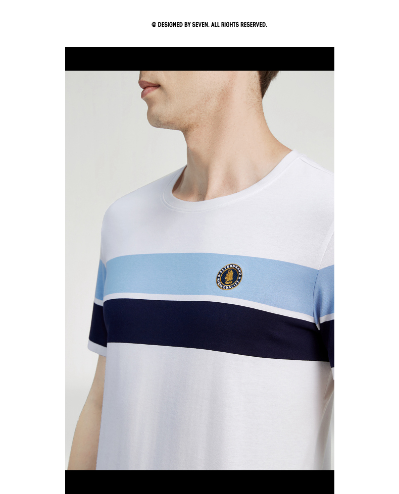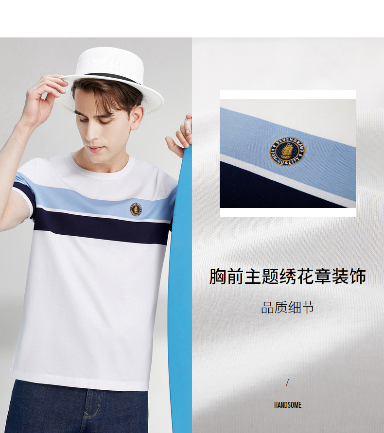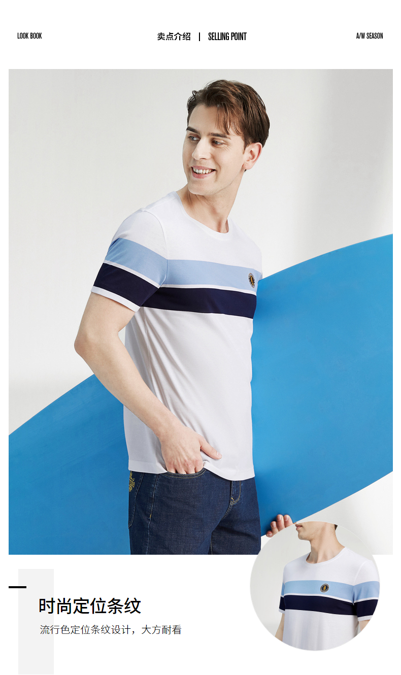 柒牌男装短袖t恤夏季薄款时尚休闲中青年圆领撞色条纹体恤衫 122T71080