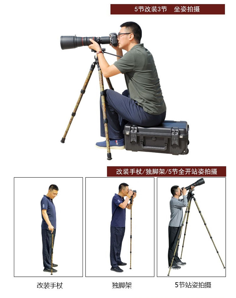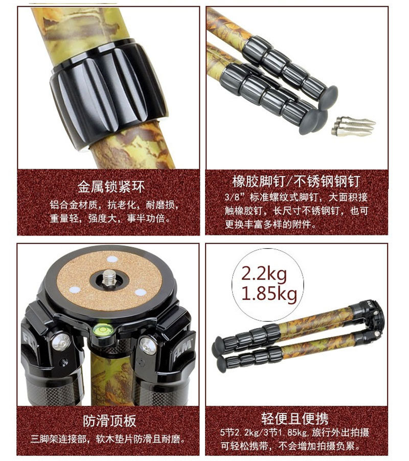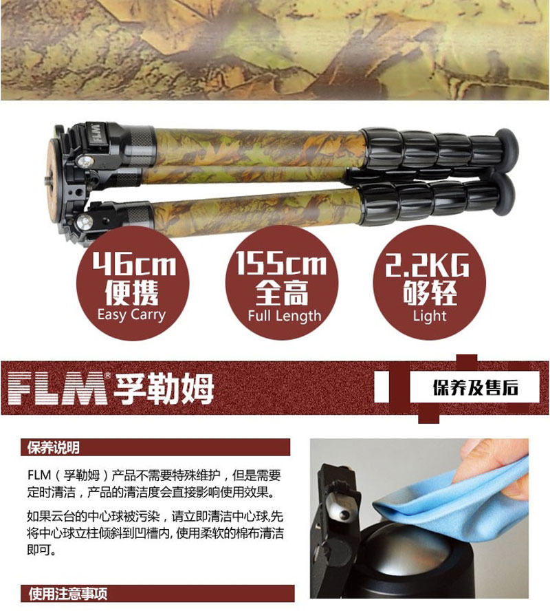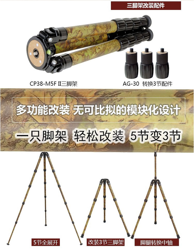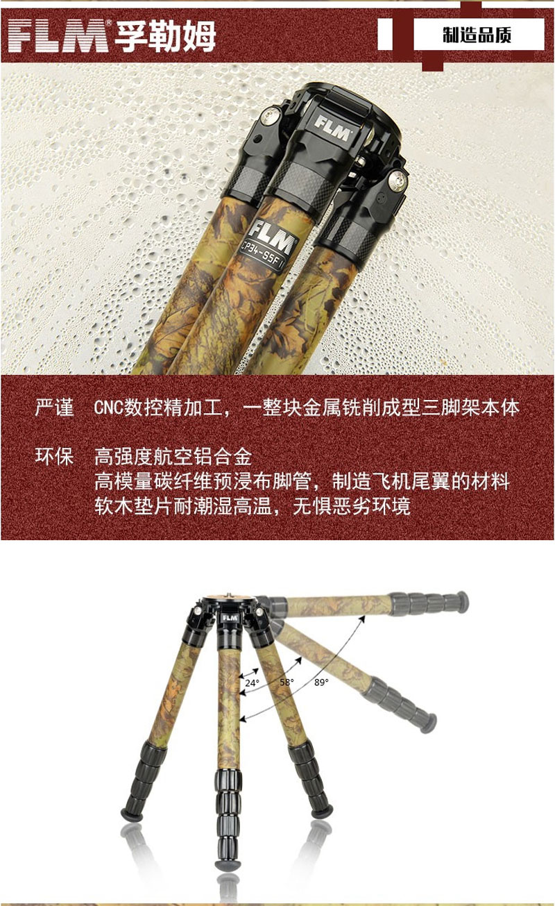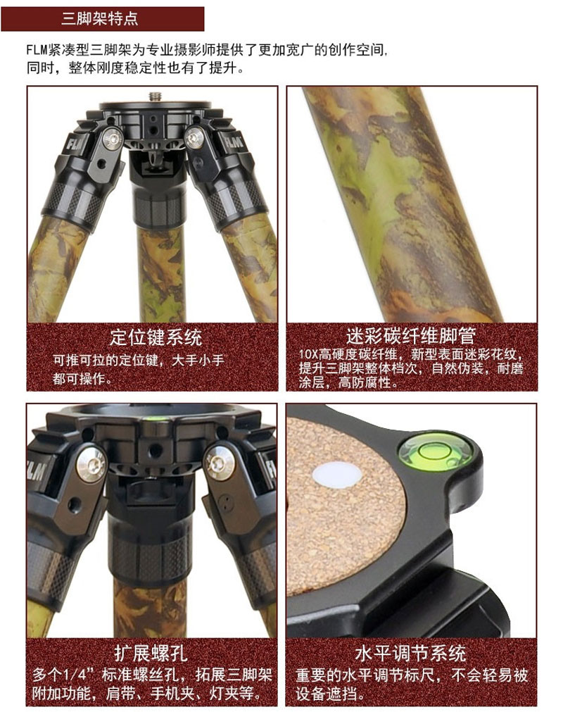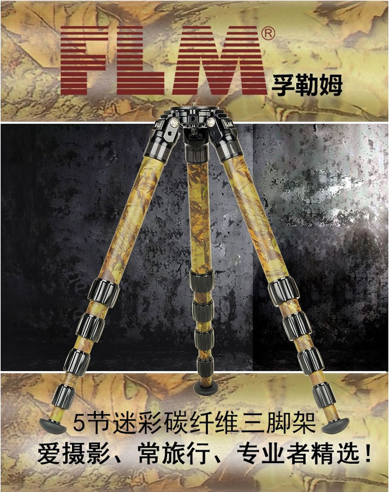 狼族优选丨FLM孚勒姆CP38-M5FII 迷彩5节稳定拍摄单反相机碳纤维三脚架