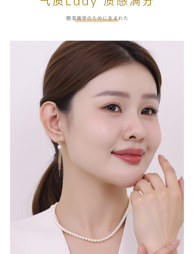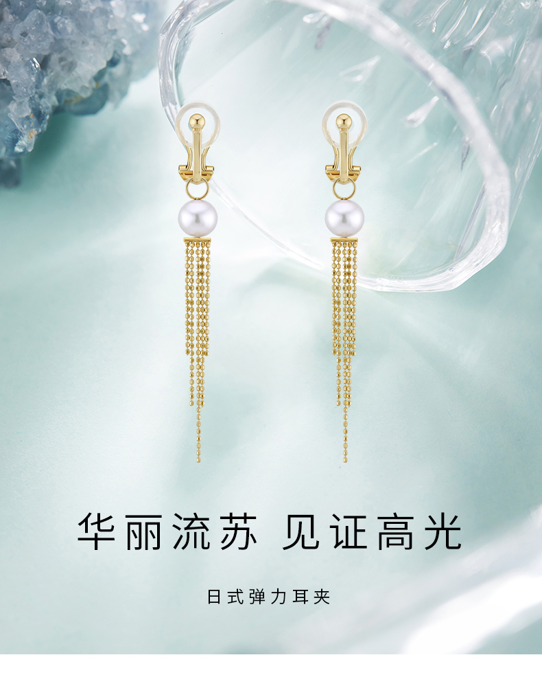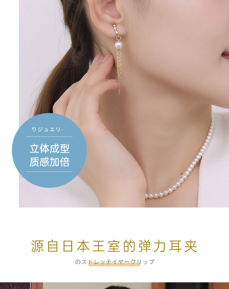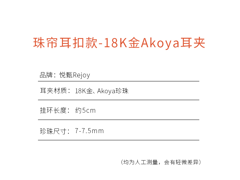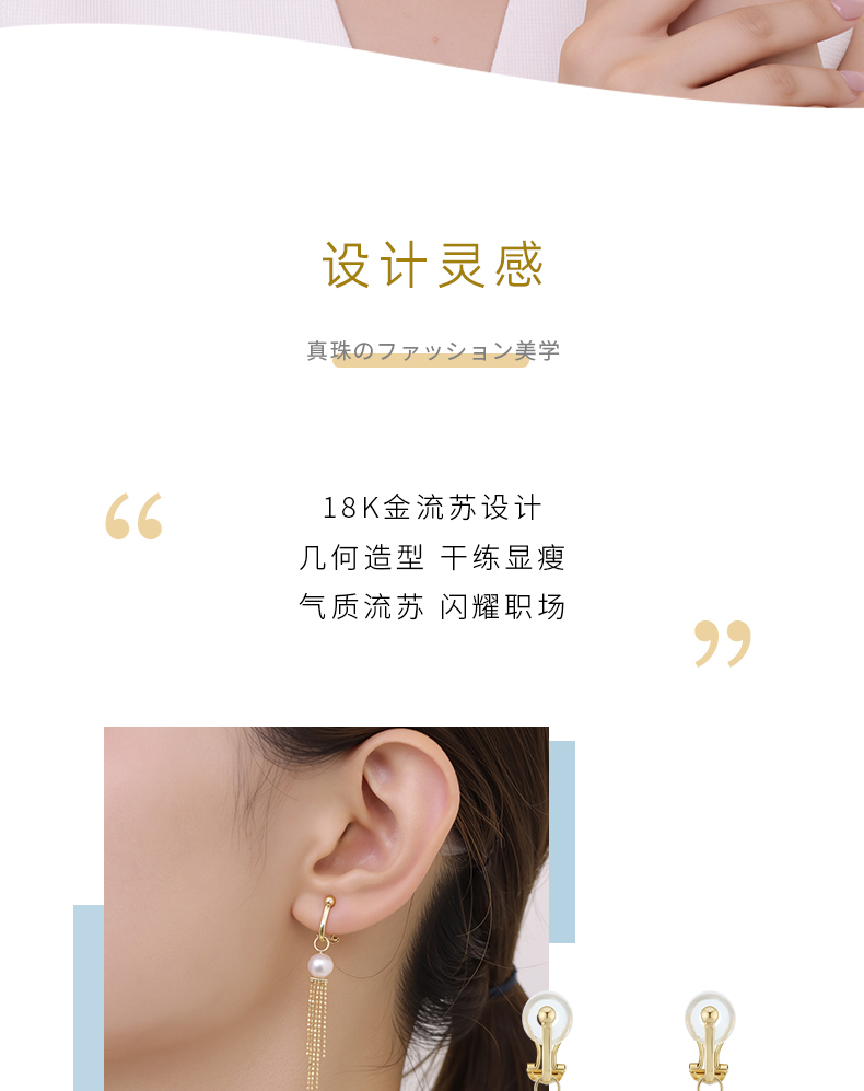【天猫同款】珠帘耳扣款-18K金Akoya珍珠耳夹 7-7.5mm