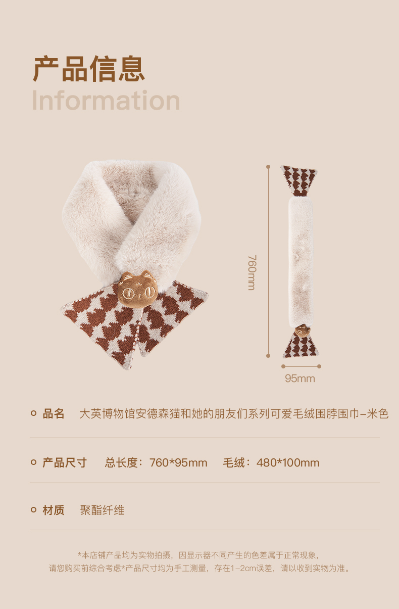 大英博物馆 盖亚·安德森猫和她的朋友们系列 可爱毛绒围脖围巾米色