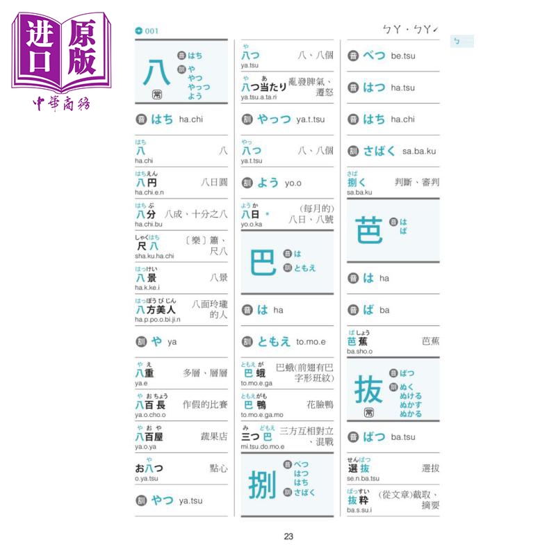 一般的日语字典尽是あいうえお的编排顺序,往往令初学者在遇到不会念的汉字时也不知从何查起,索性放弃。本书为方便查阅,跳脱五十音的编排顺序,独树一格以注音符号ㄅㄆㄇ的方式编排,让读者查日文汉字如查中文字典一般,能更加快速、方便地找到汉字的读音。