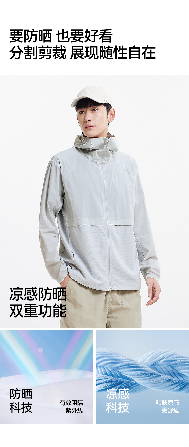 防晒外套|森马夹克男夏季凉感透气连帽外套户外运动时尚拼接上衣
