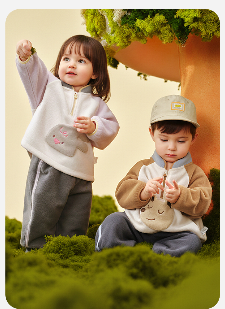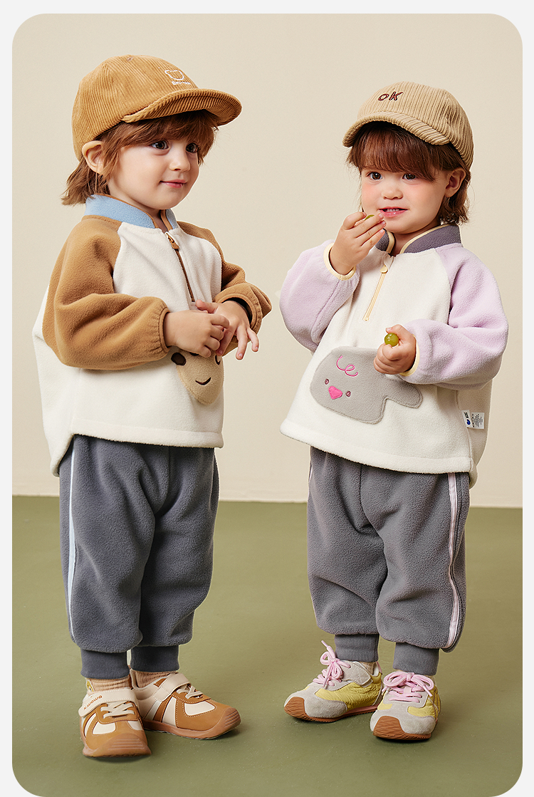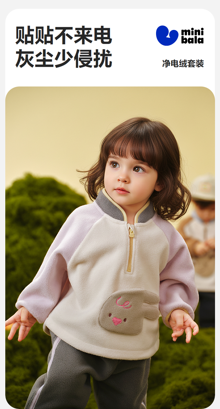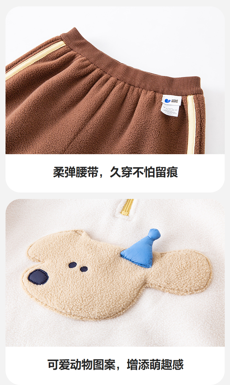 迷你巴拉男女童抗静电长袖套装摇粒绒柔软保暖两件套2025冬新