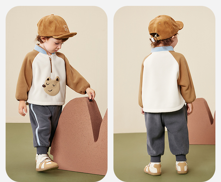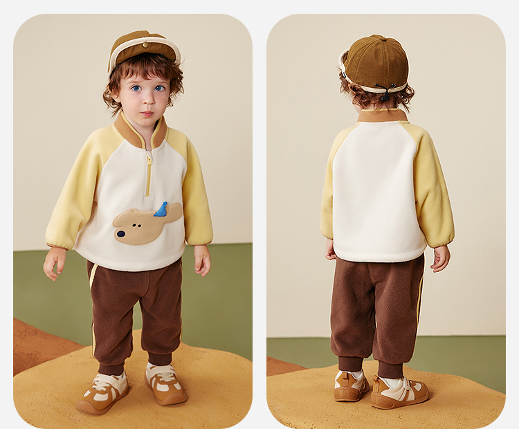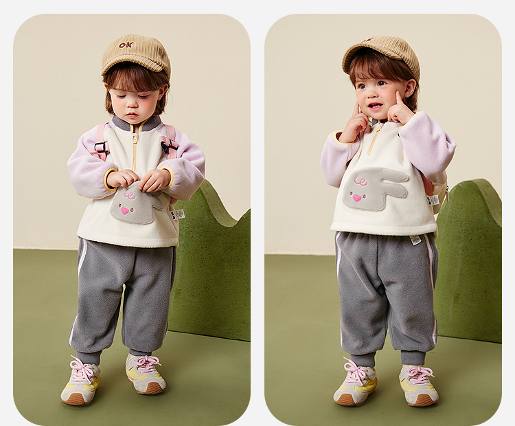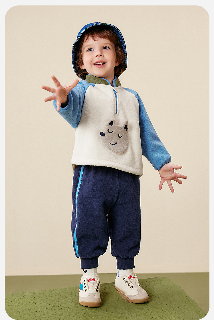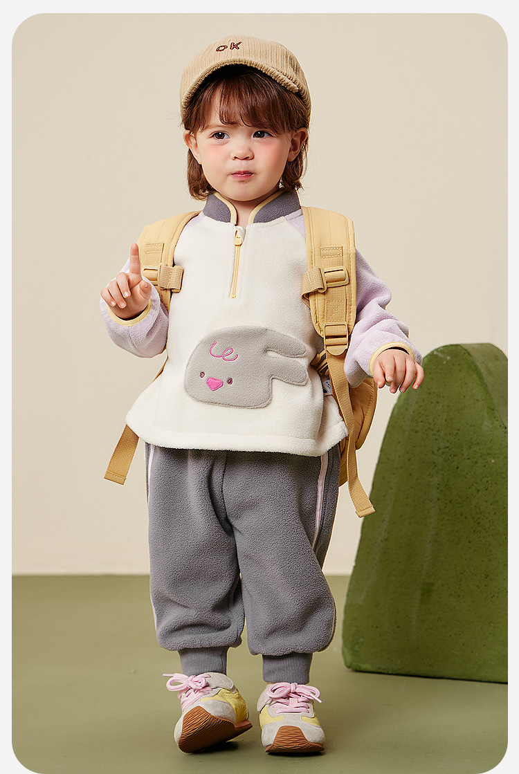 迷你巴拉男女童抗静电长袖套装摇粒绒柔软保暖两件套2025冬新