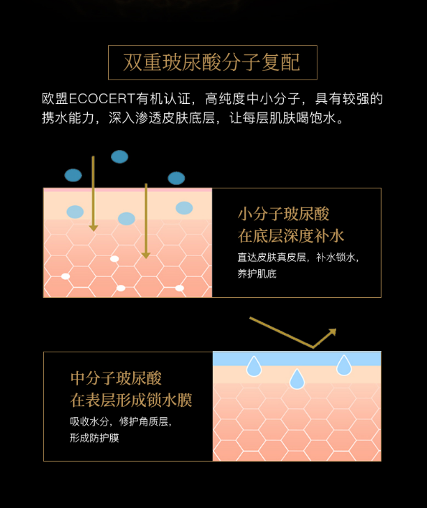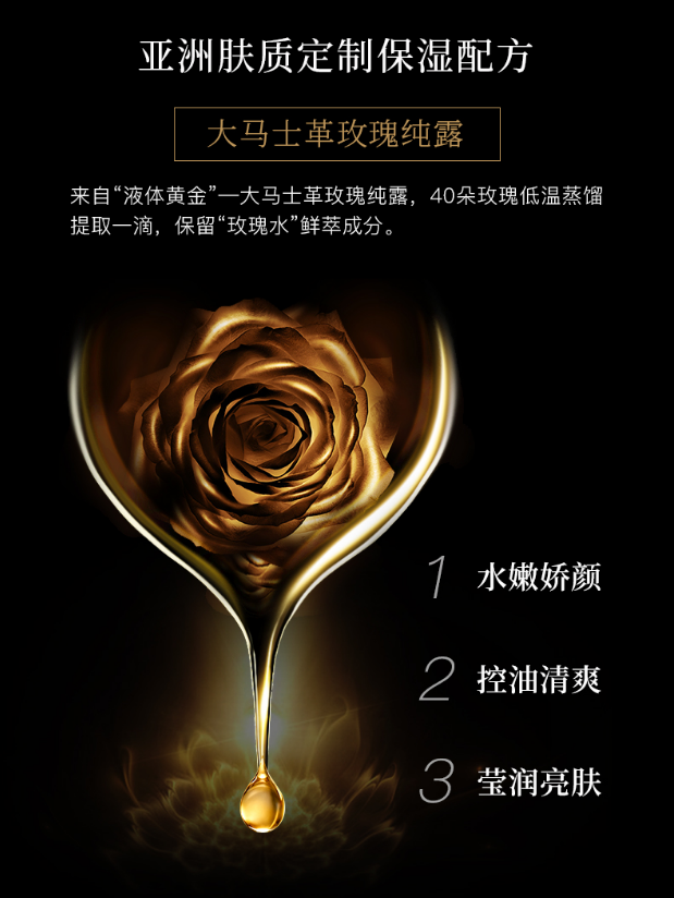 玻尿酸(保湿)+大马士玫瑰纯露(玫瑰清香味道惊艳、舒缓抗敏)