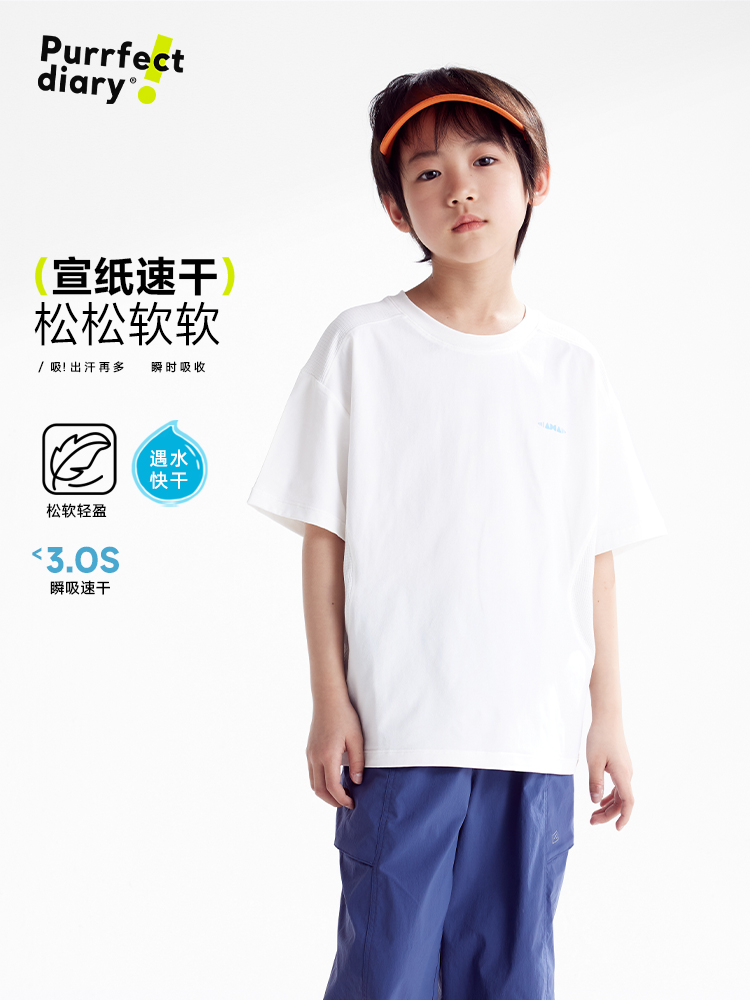 fx-【宣纸速干】咕噜日记童装儿童透气短袖夏季男女童排汗衣清爽T恤PXT2557