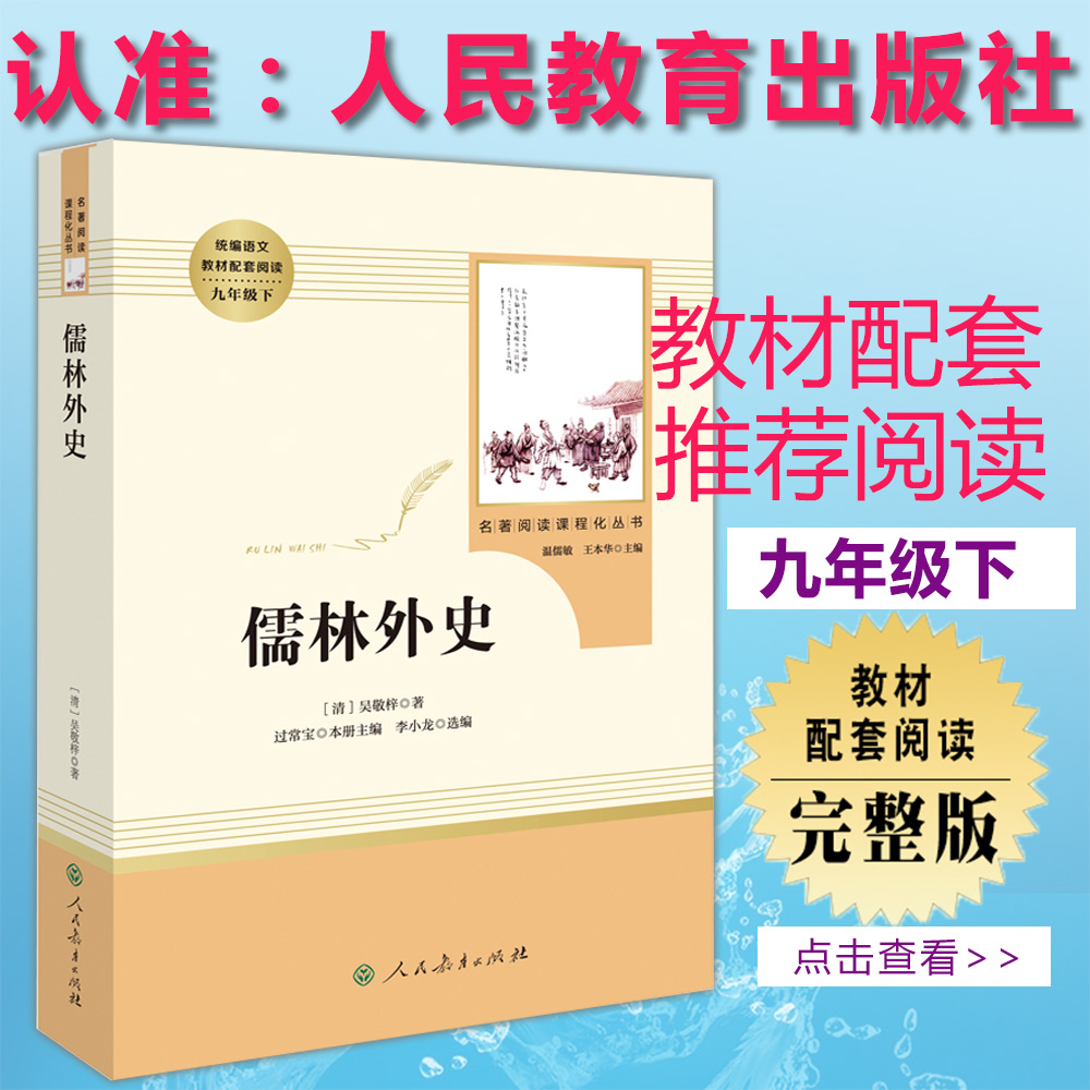 儒林外史正版 吴敬梓 原著完整版无删减 人民教育出版社 9/九年级下册部编版文学书目 初中语文统编教材配套阅读 配套人教版
