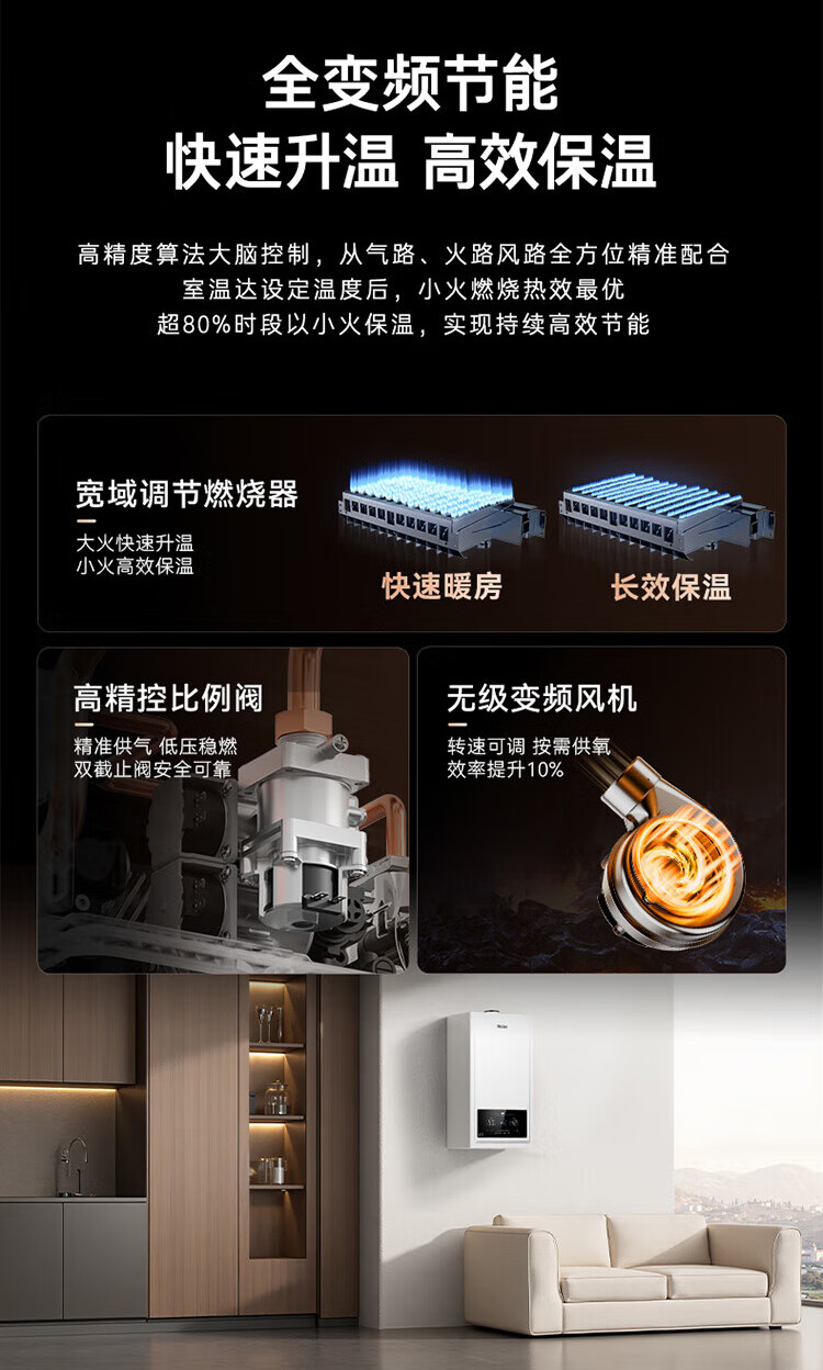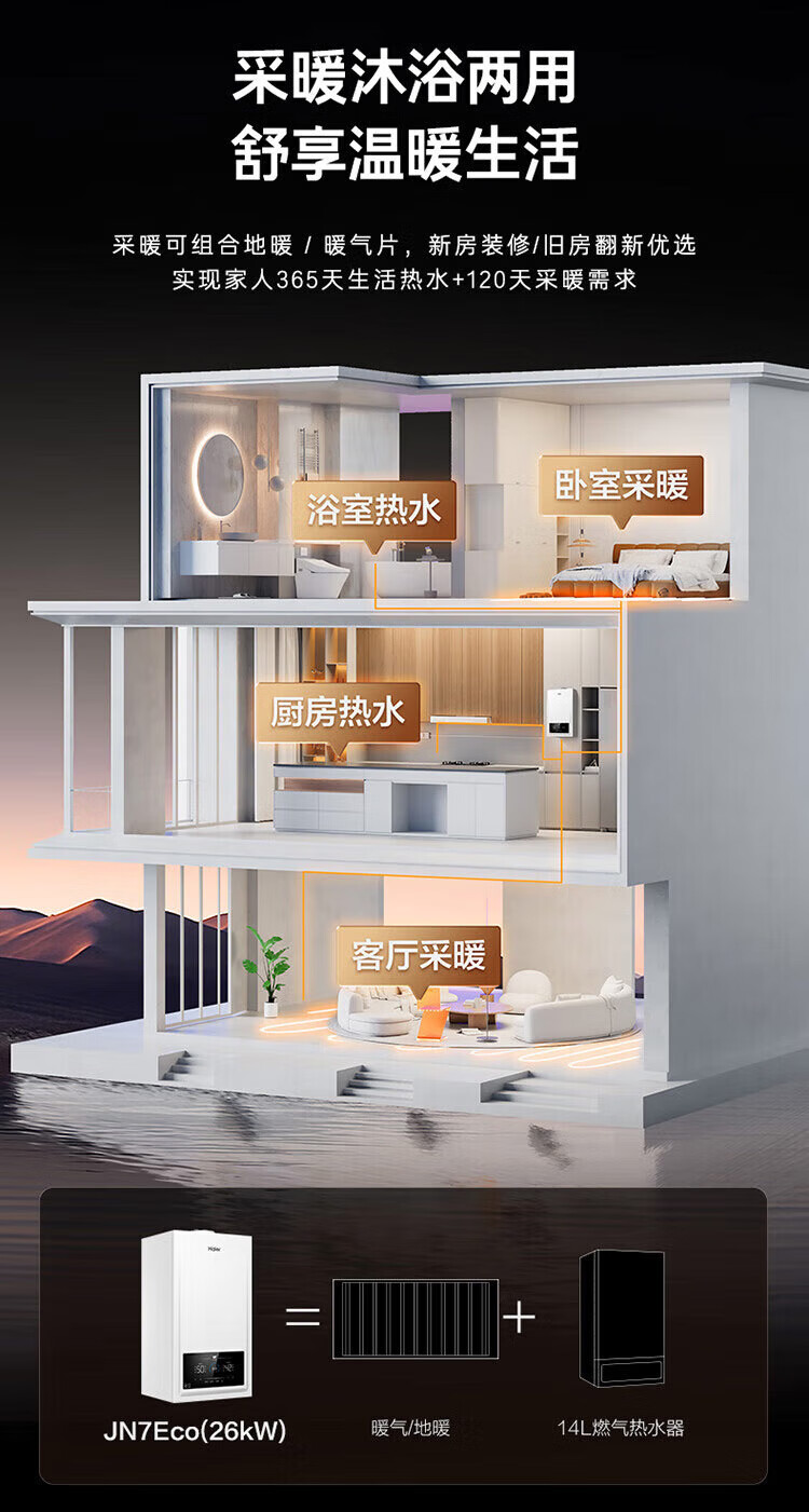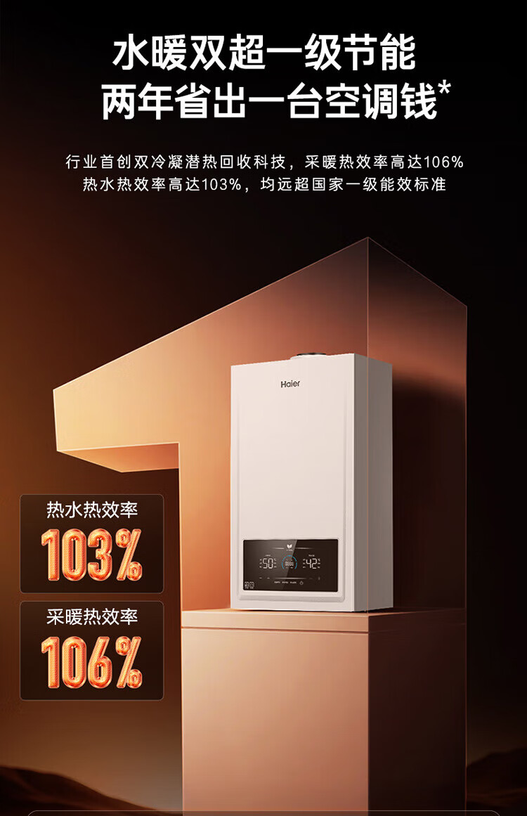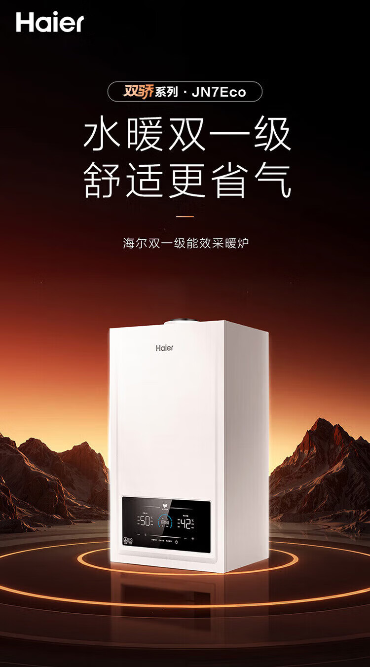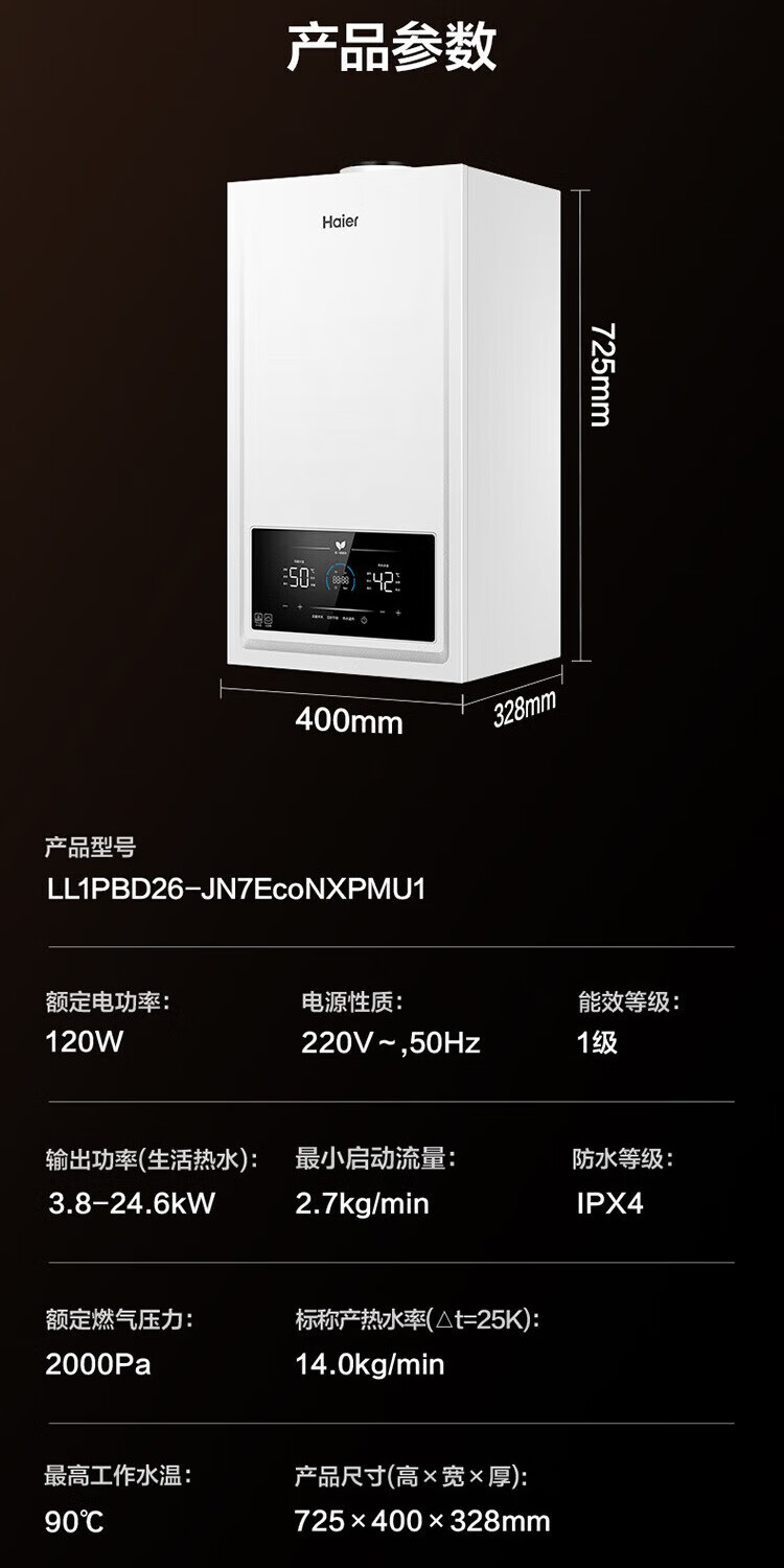 【新款双冷凝】海尔(Haier)双冷凝超一级能效平衡式燃气壁挂炉无级变频水伺服天然气静音采暖炉热水器LL1PBD26-JN7EcoNXPMU1 26KW 121-180平