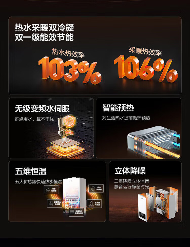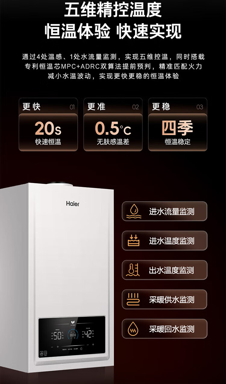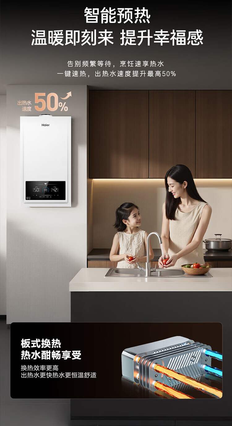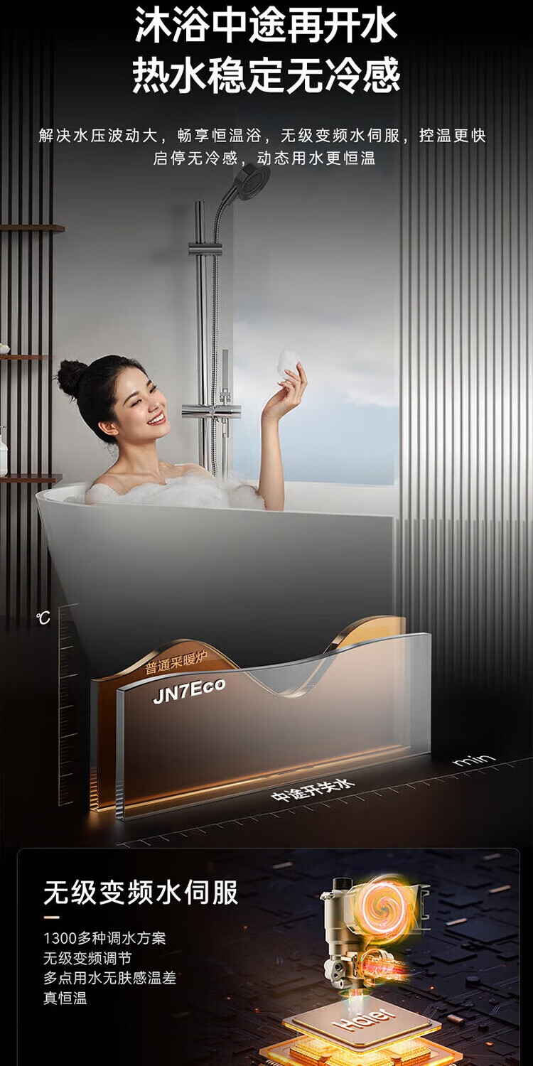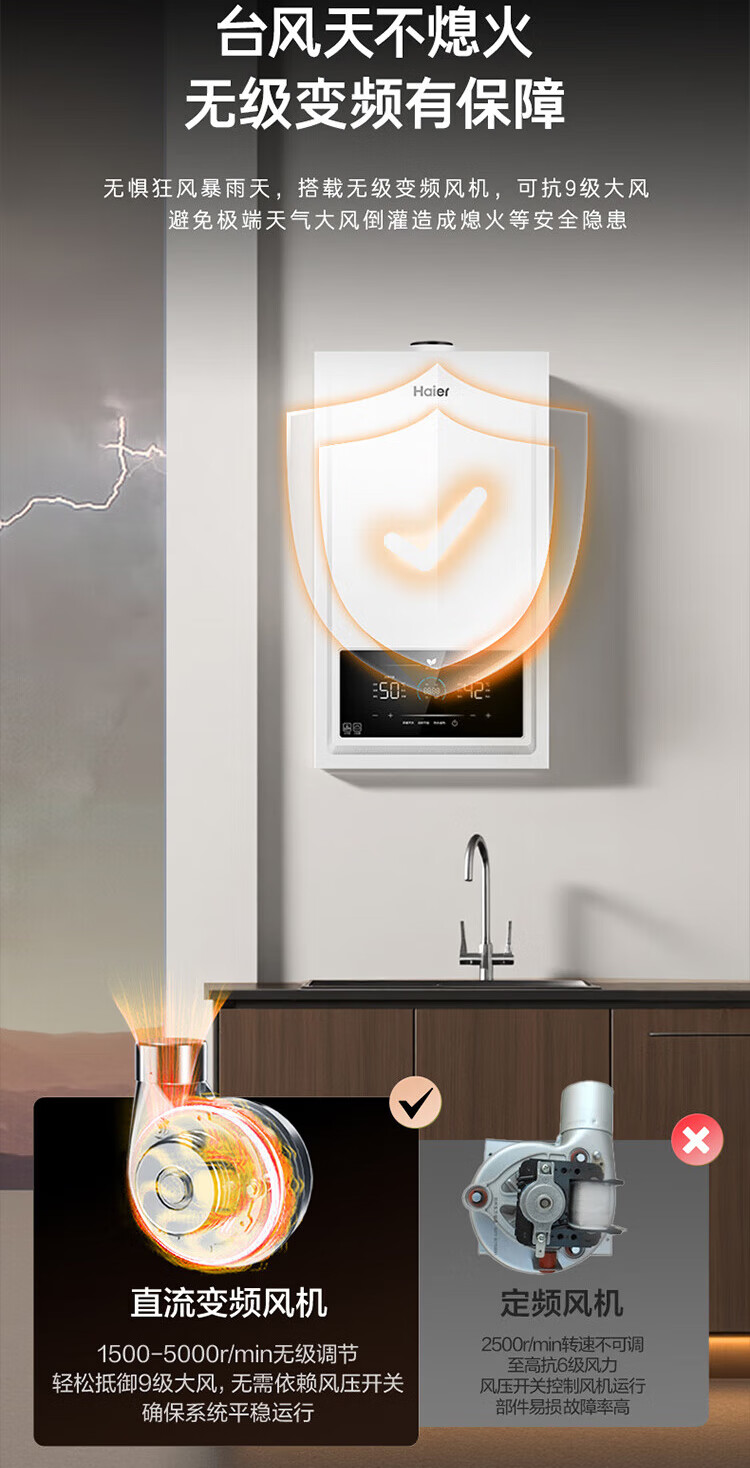 【新款双冷凝】海尔(Haier)双冷凝超一级能效平衡式燃气壁挂炉无级变频水伺服天然气静音采暖炉热水器LL1PBD26-JN7EcoNXPMU1 26KW 121-180平