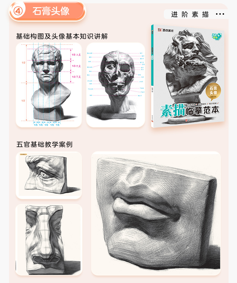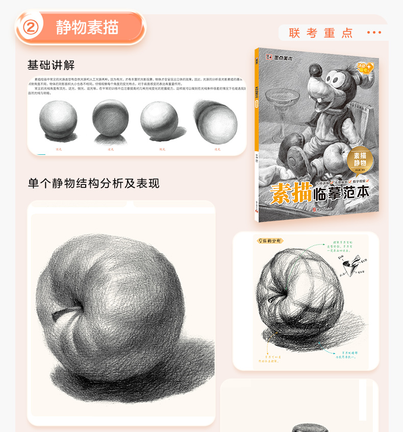 墨点美术 素描临摹范本 素描书入门教材零基础自学绘画入门书名师讲解视频步骤解析初学者静物临摹画册