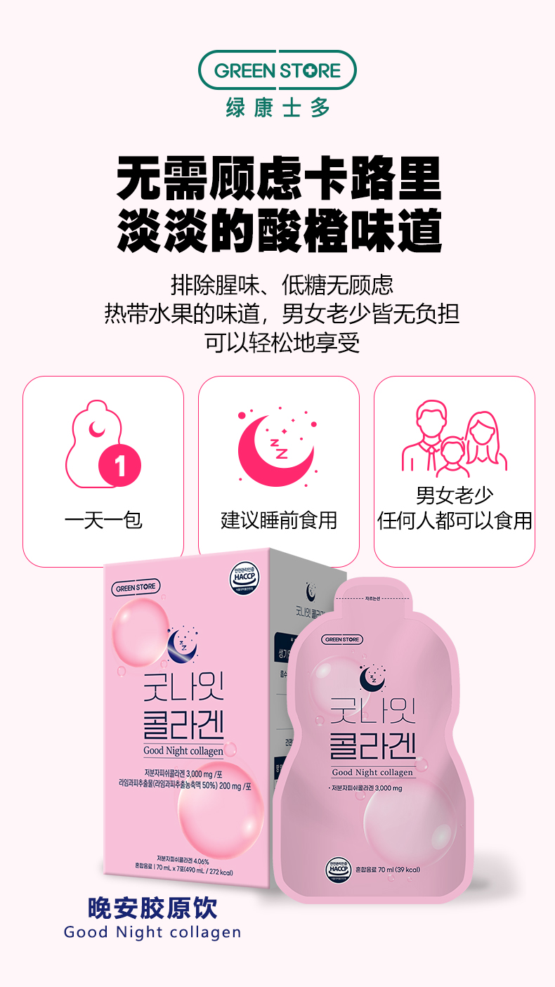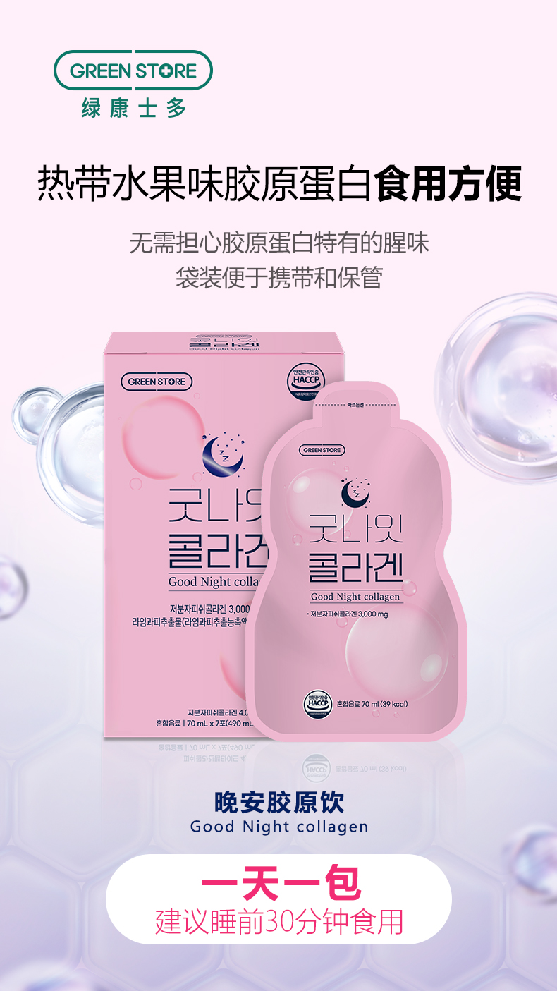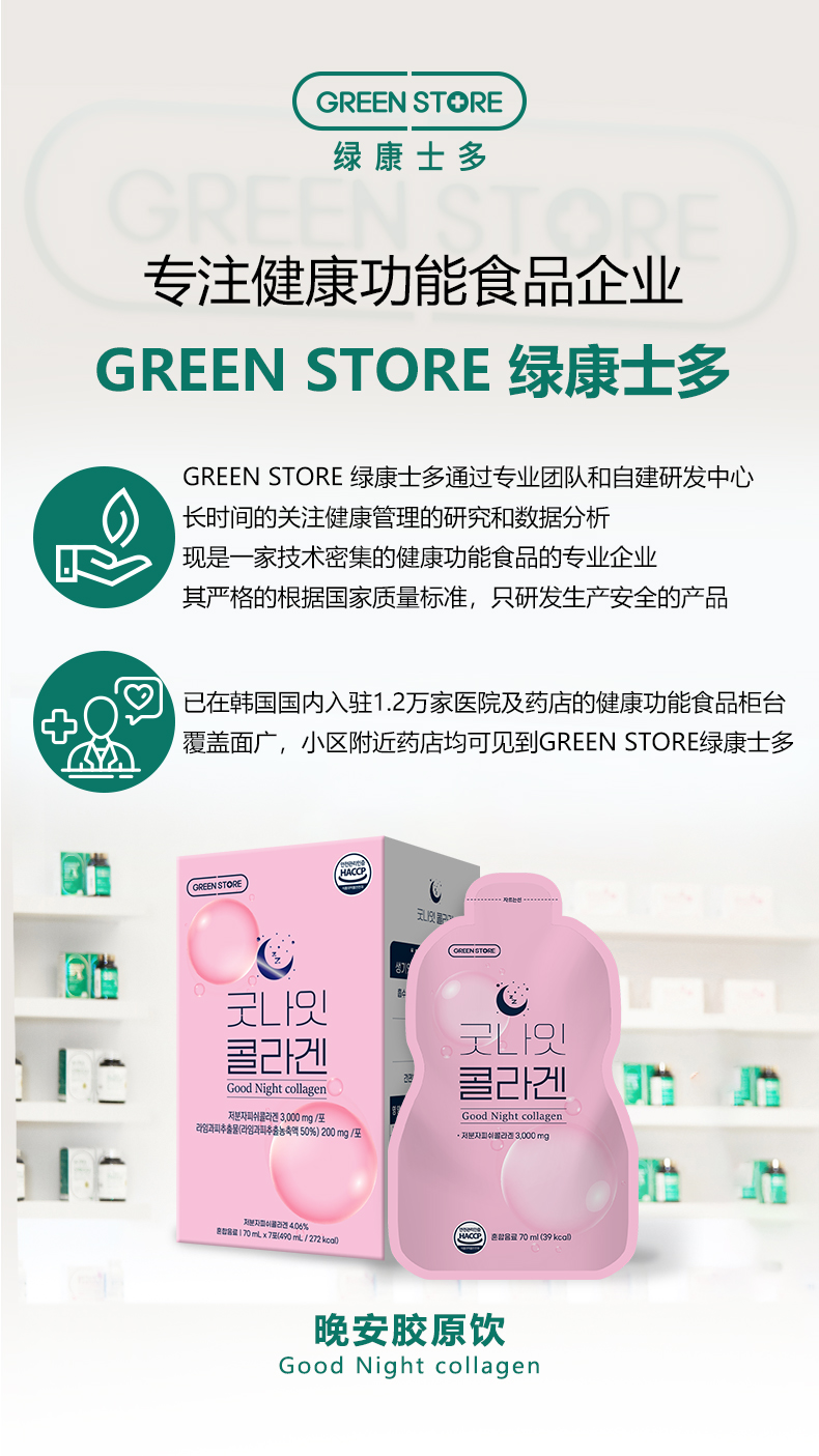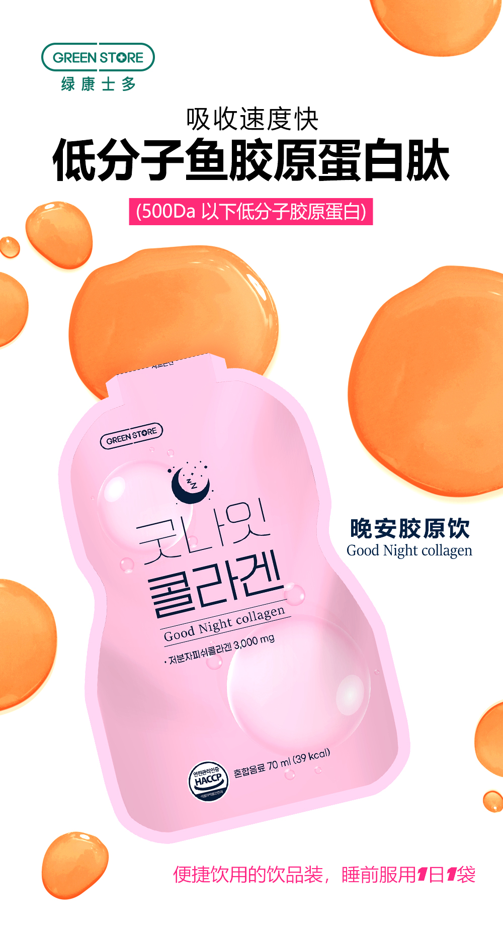 美美睡一觉 | 韩国进口GREEN STORE绿康士多晚安胶原饮,70ml*7包/盒