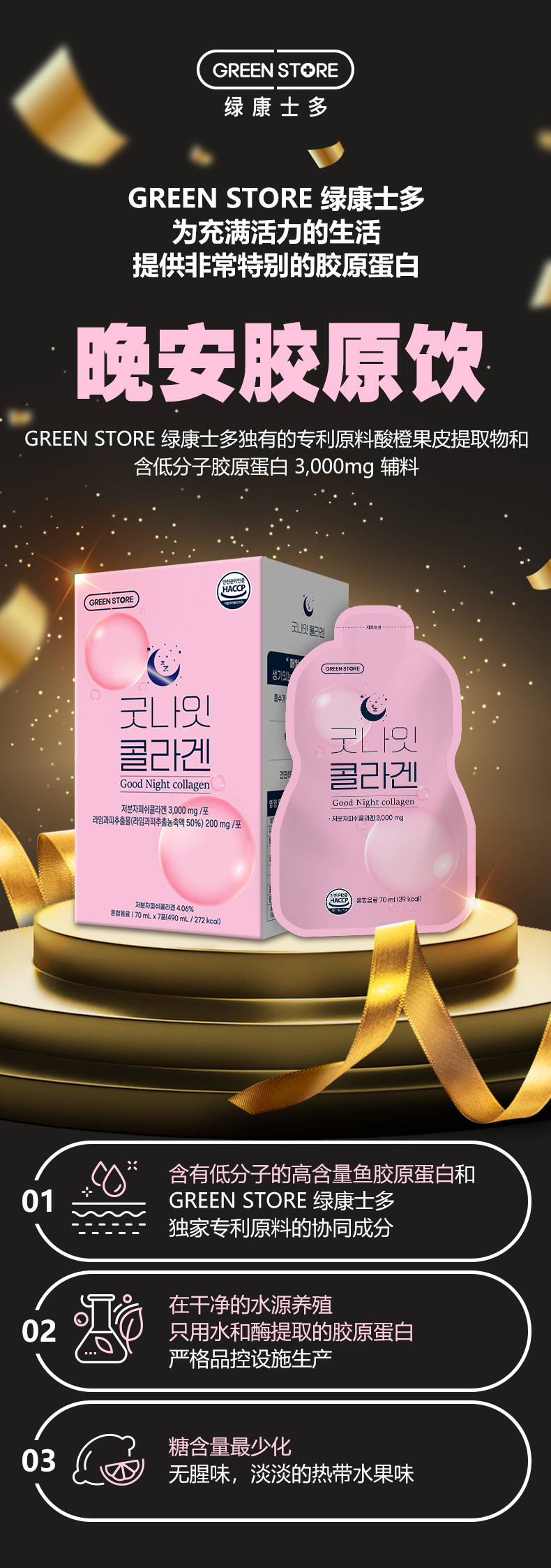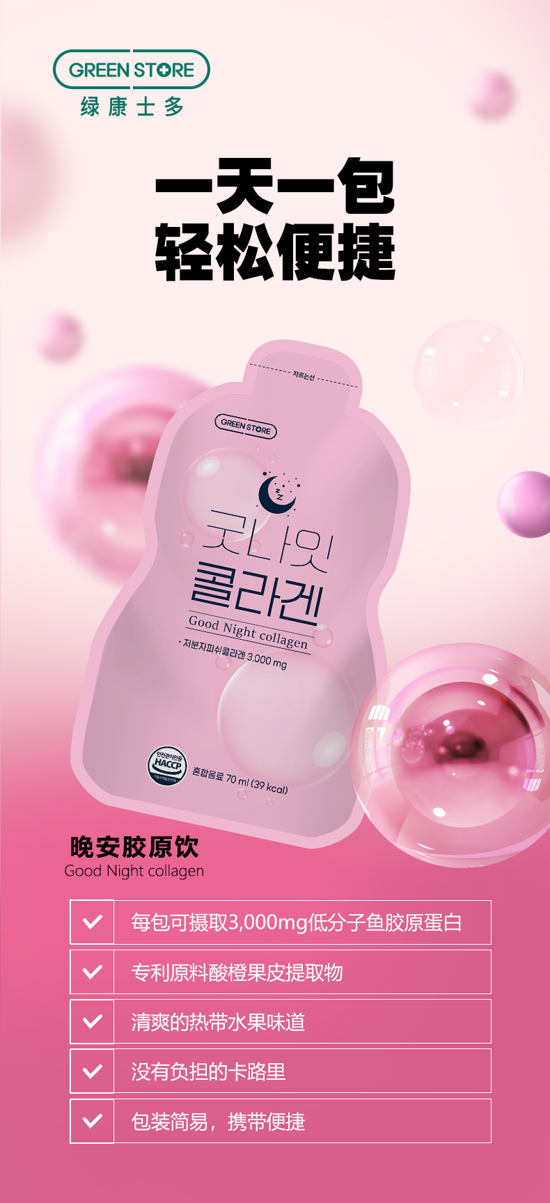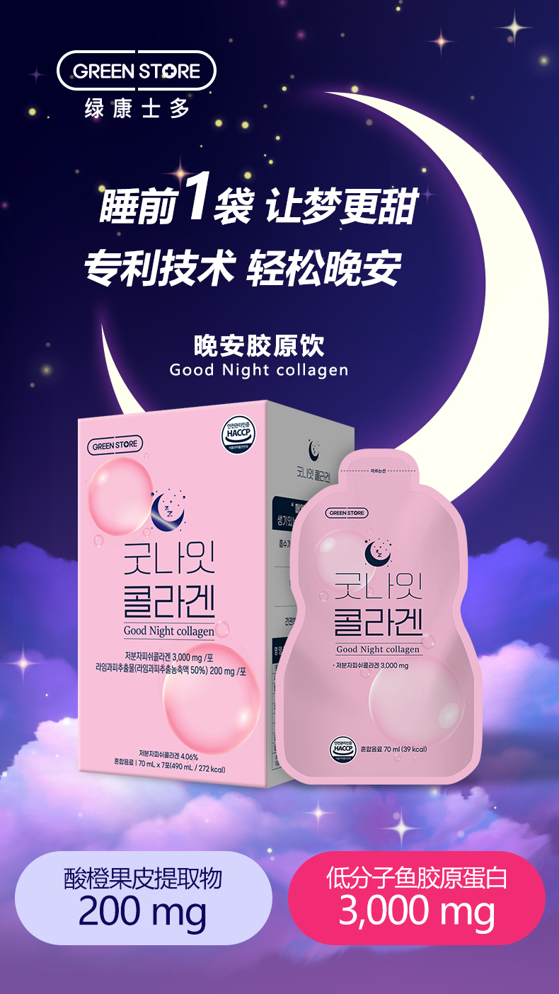 美美睡一觉 | 韩国进口GREEN STORE绿康士多晚安胶原饮,70ml*7包/盒