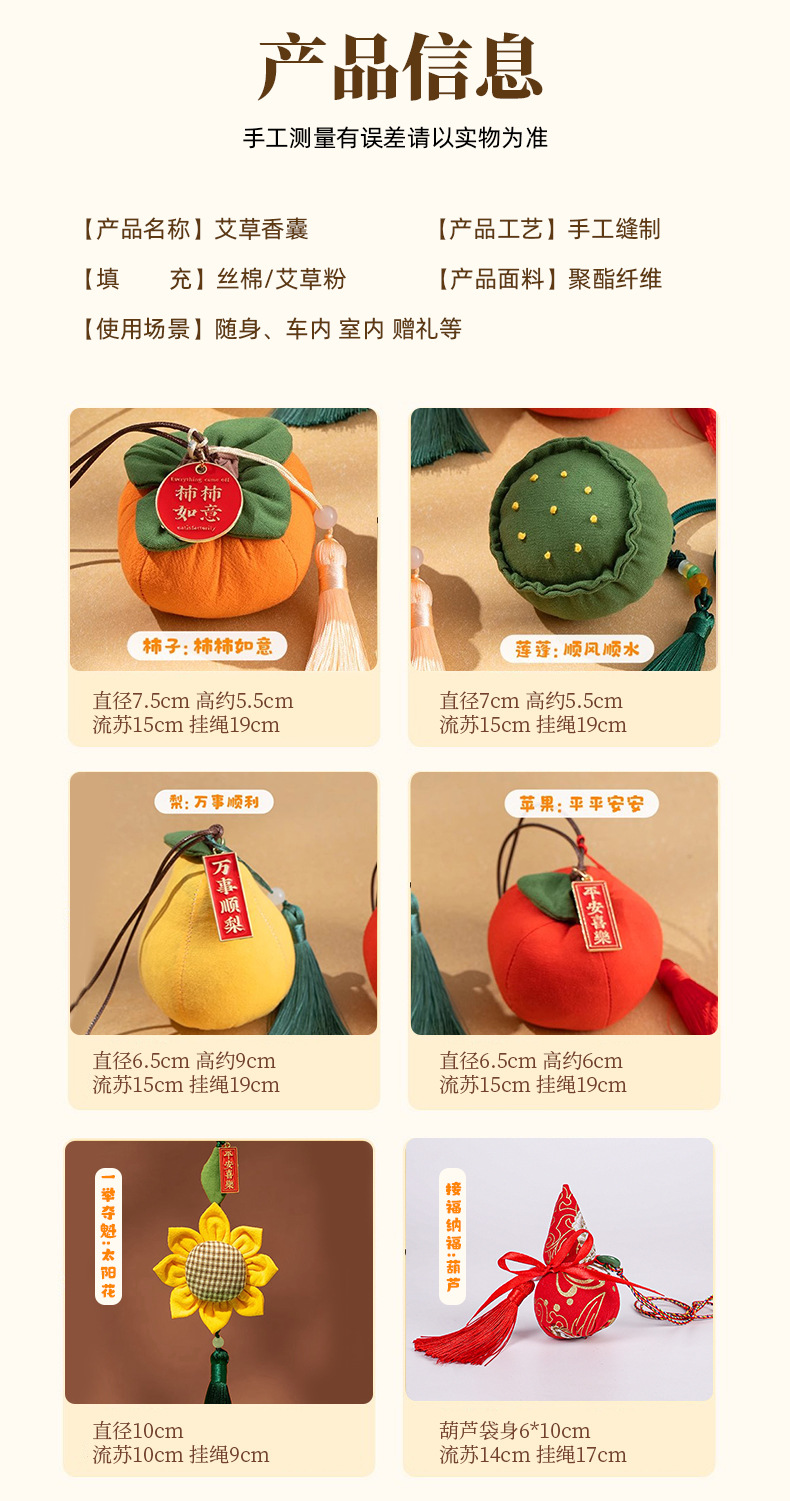 赠送礼盒【柿林如意!端午香囊】端午节香包香囊礼品柿子葫芦香囊柿柿如意艾草古风香包车载挂件。ry