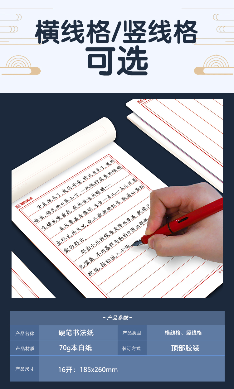墨点文创 横线格竖线格硬笔书法专用纸 硬笔书法练字本钢笔练字纸比赛专用纸初学者练字