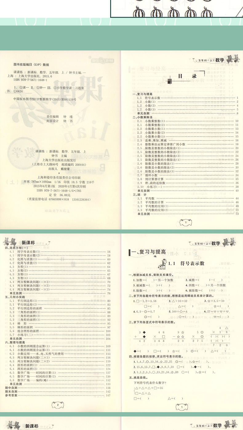 钟书金牌课课练 全新修订版 数学 5年级上册/五年级第一学期 数学 上海小学教辅课后同步配套练习期中期末单元测试训练