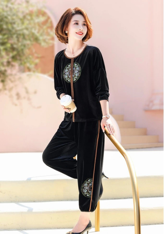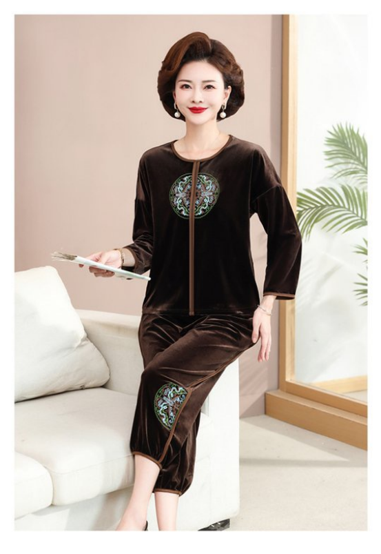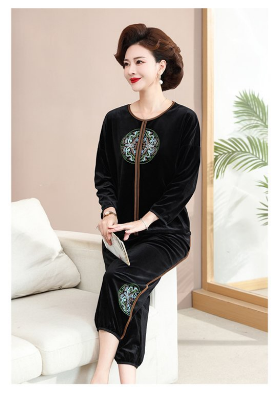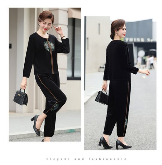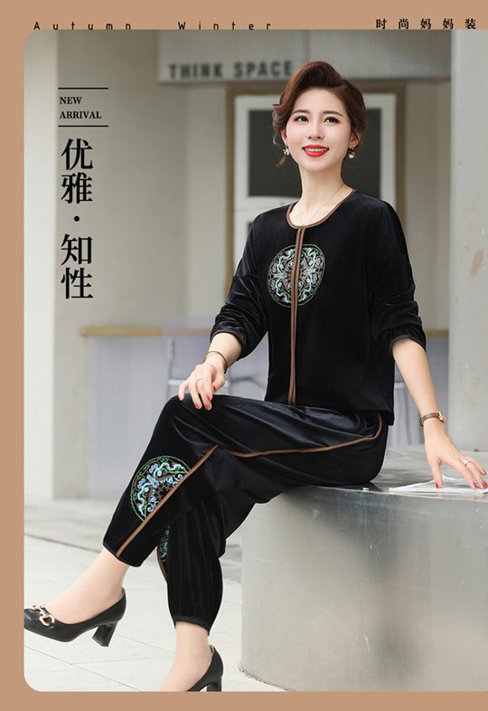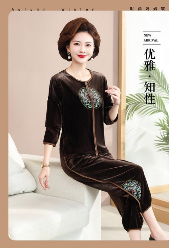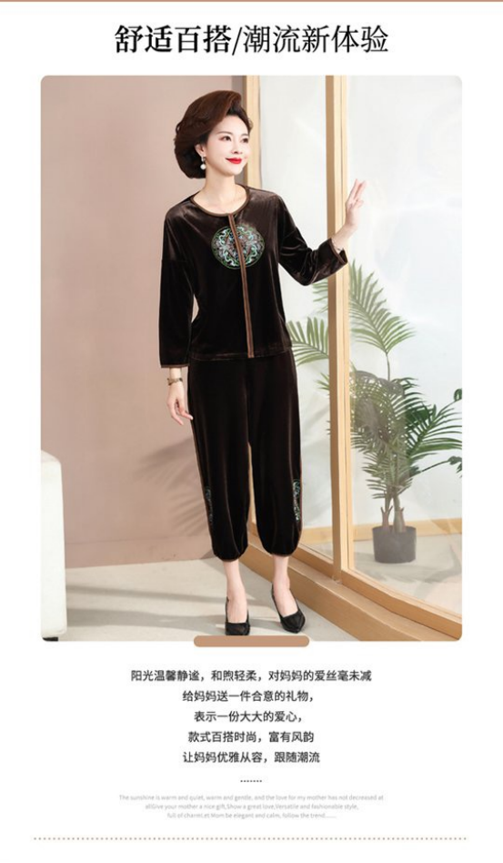 对于每一个女人来说 美和时尚一直是生命中不可或缺的东西 尤其是现如今强调的高级感更是受人追捧 丝绒套装可以说是专为妈妈们研发设计的 只有妈妈这个年龄段的优雅女人才能穿出 金丝绒自带出来的高级感和优雅气质
