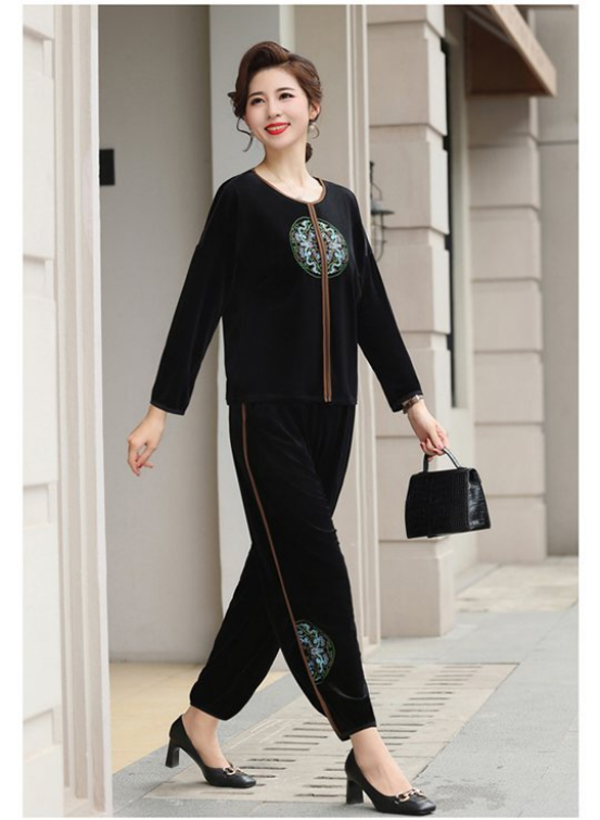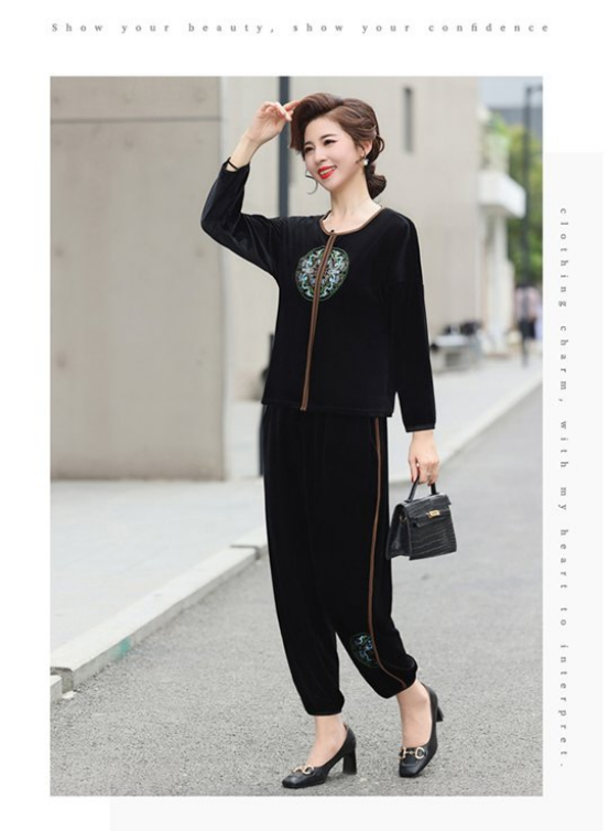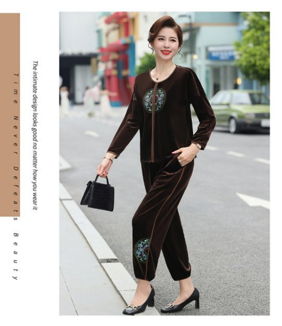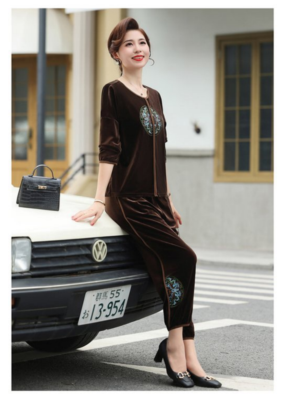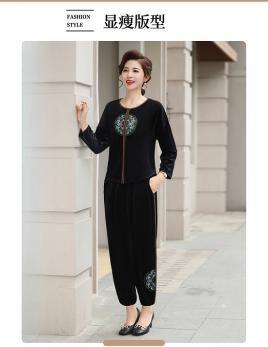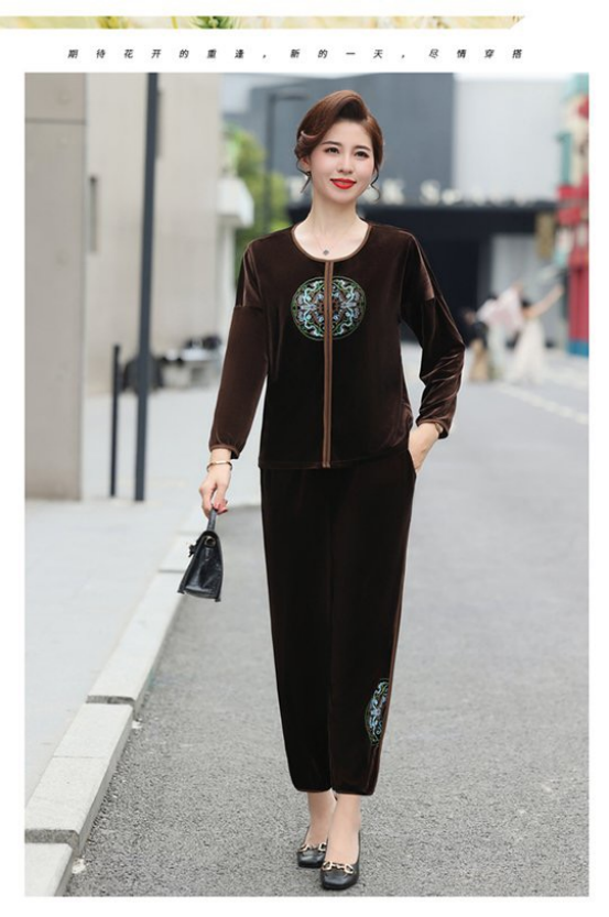 🍑【简牧羊国风金丝绒春秋休闲妈妈装】🌿1、适合春日里的穿搭,采用两件套的形式,💕对于中年妈妈来说更加方便快捷、百搭、舒适!