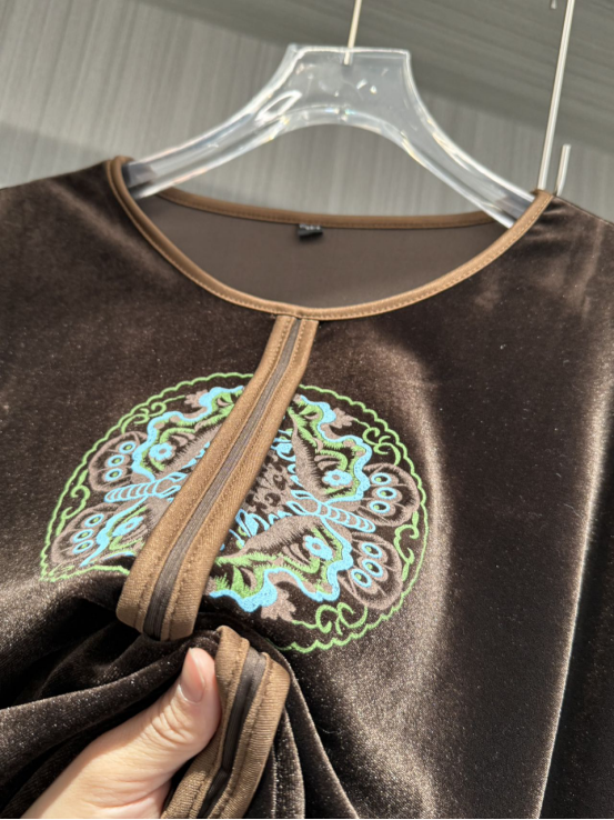 尤其是今年我们可以看到各种各样的国风款式 国风流行元素已经形成一定趋势 丝绒面料也因此再次被拉上潮流的舞台 不仅手感舒适,上身感觉柔滑 并且还会给人一种贵气逼人的气场