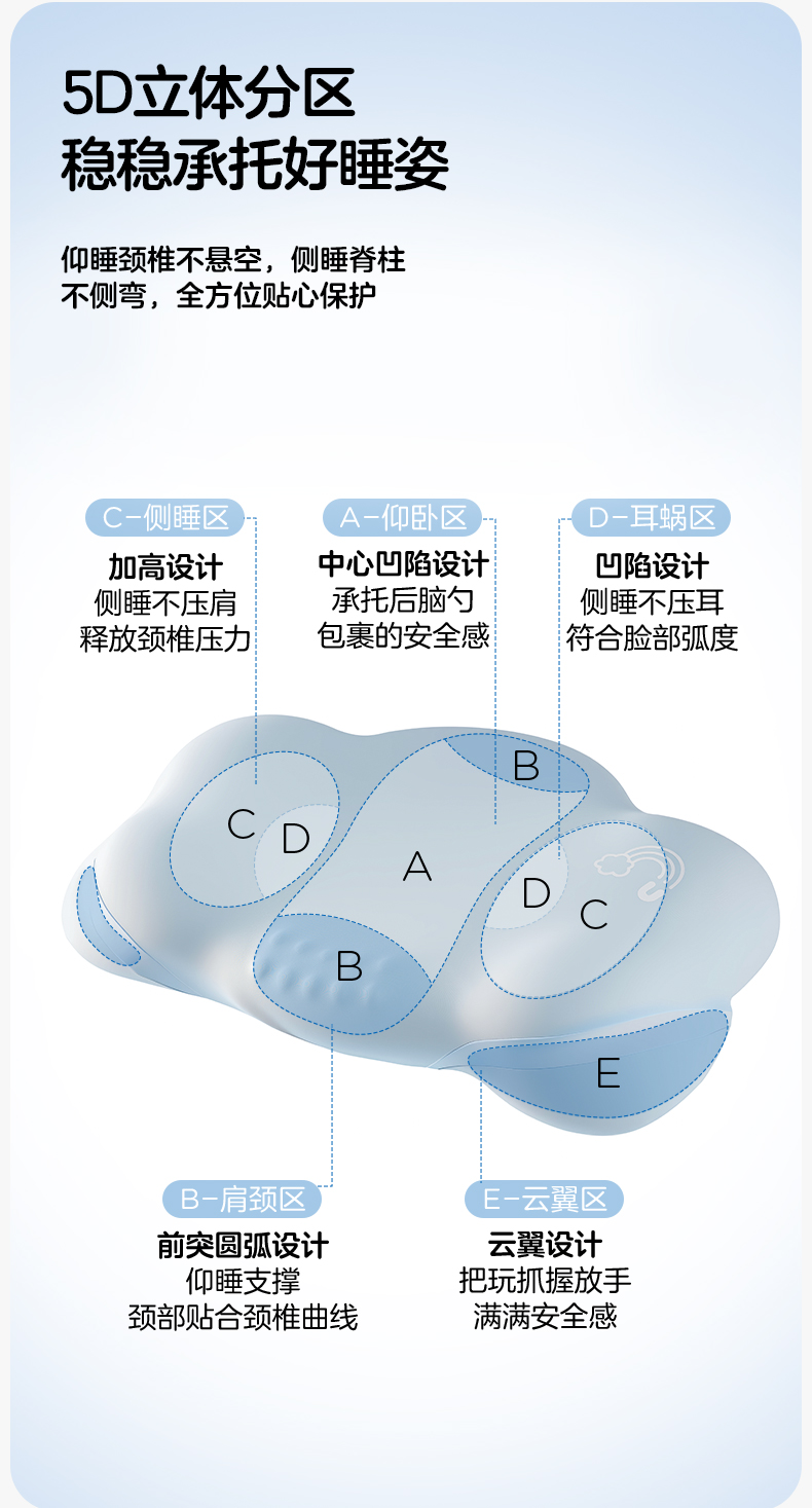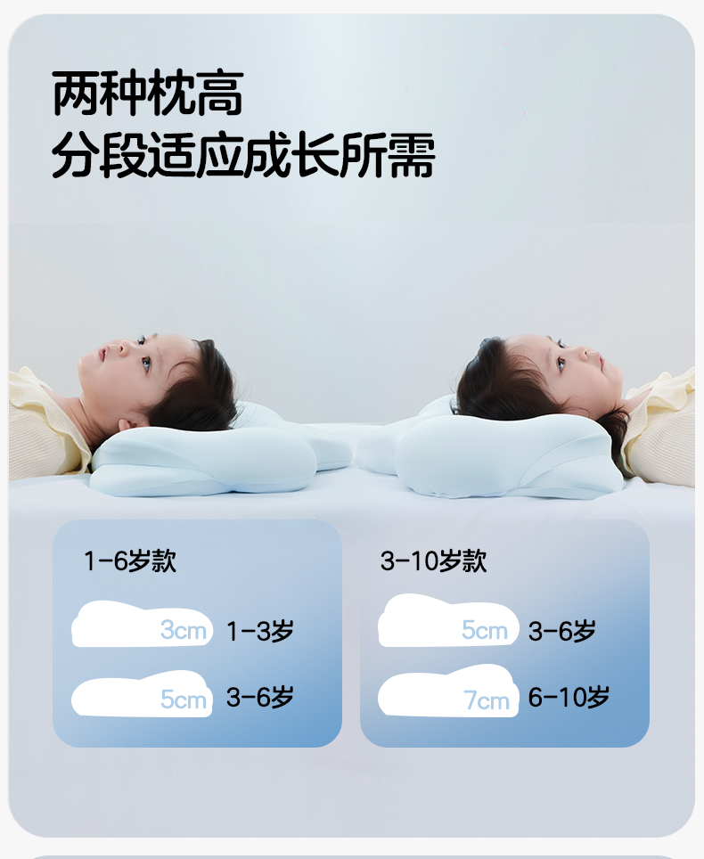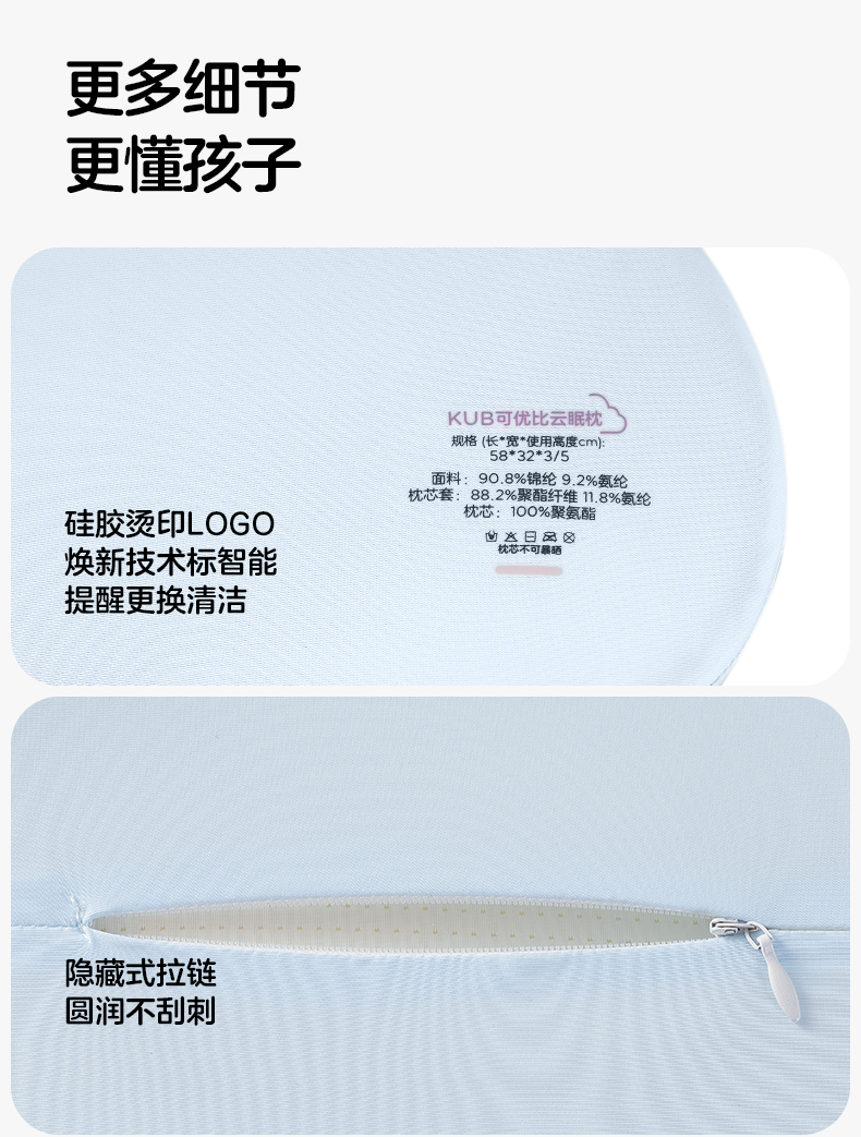 【新品】KUB可优比云朵儿童枕头专用工学护脊护颈透气1到6岁以上宝宝枕头