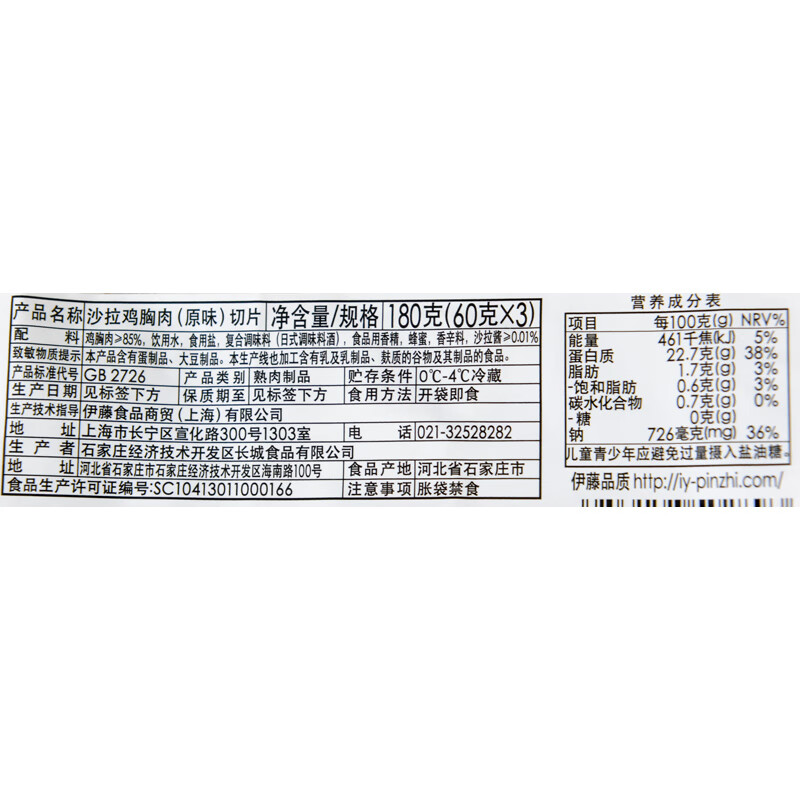 伊藤品质沙拉鸡胸肉切片原味 180g(低脂高蛋白)