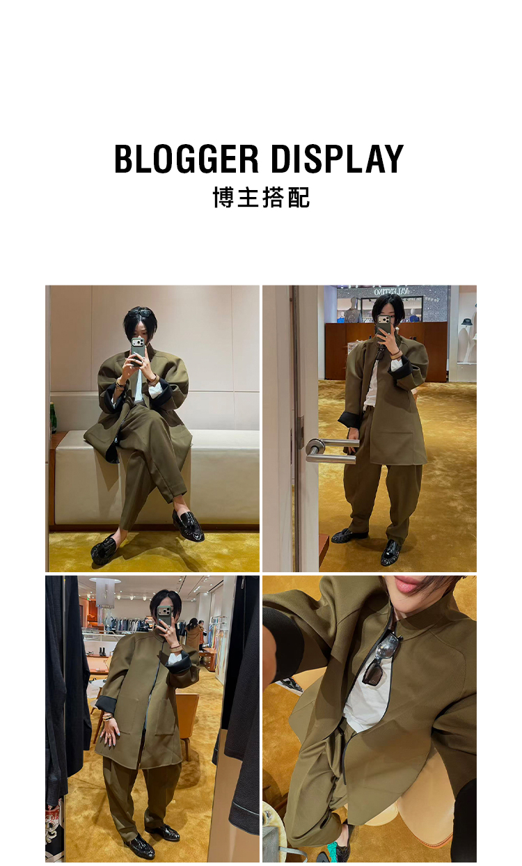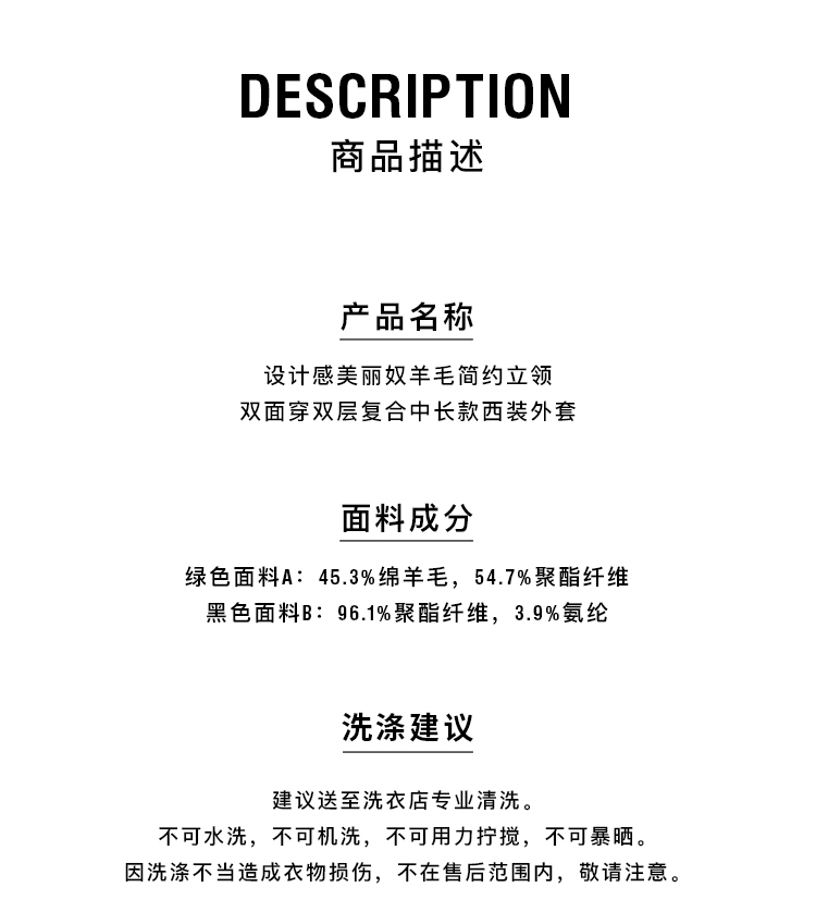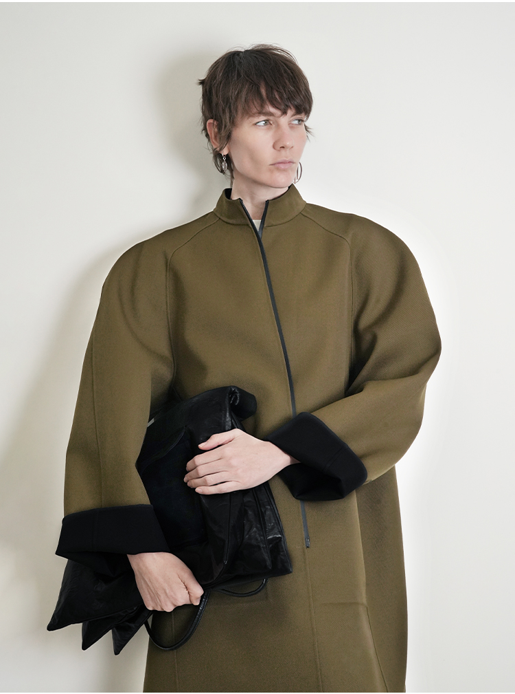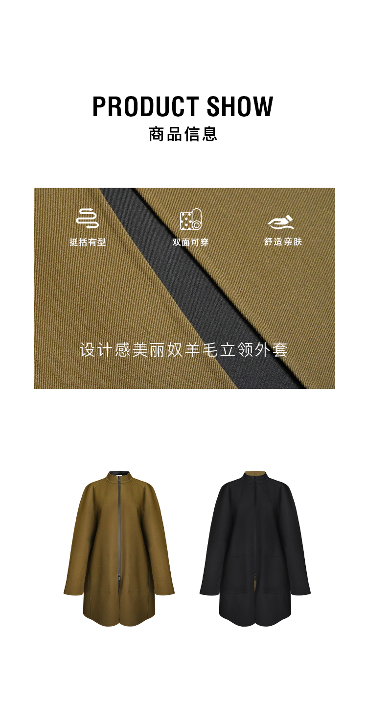 HIDEMI 设计感美丽奴羊毛简约立领双面穿双层复合中长款西装外套