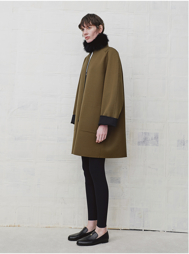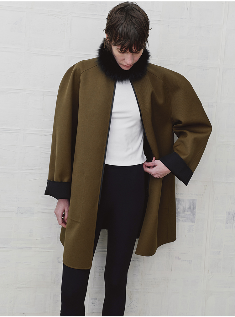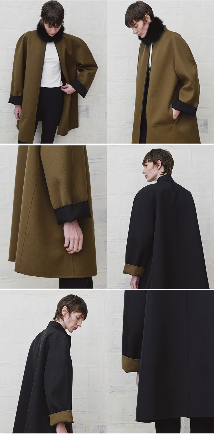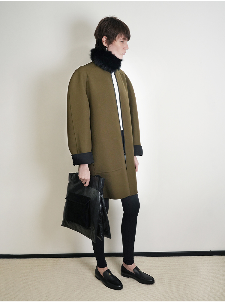 HIDEMI 设计感美丽奴羊毛简约立领双面穿双层复合中长款西装外套