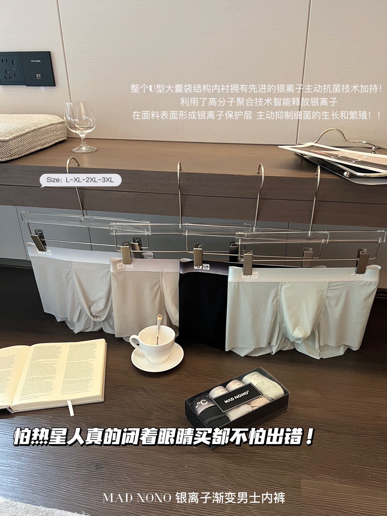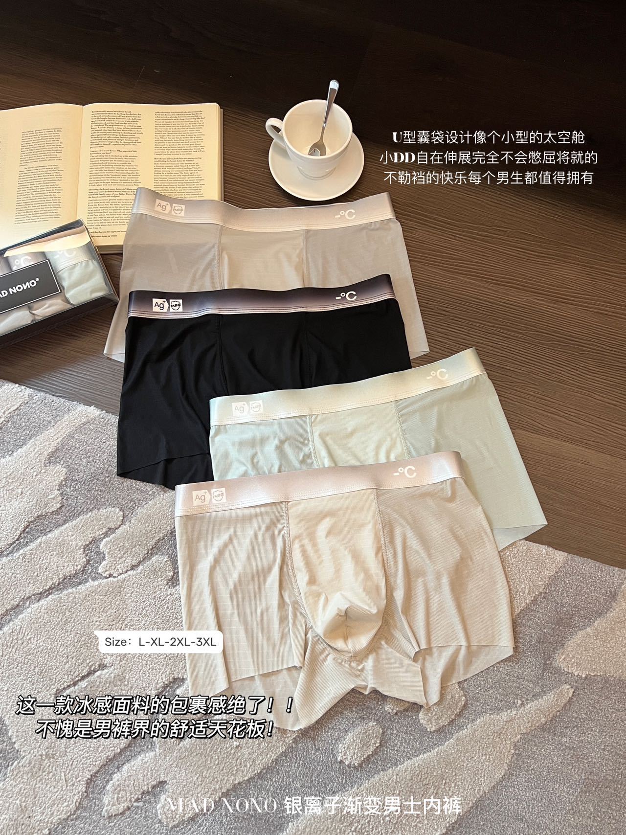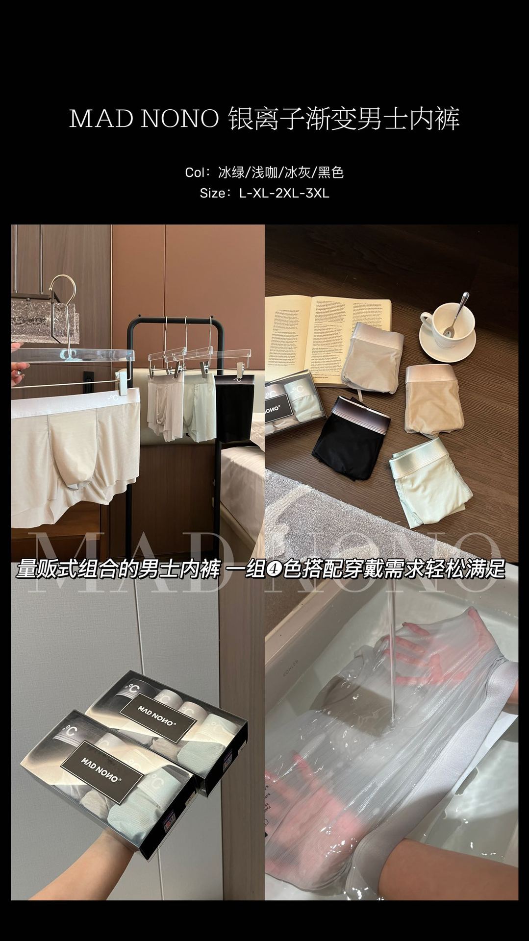 MADNONO银离子渐变男士内裤轻薄无痕冰丝夏季透气四角平角裤4条装