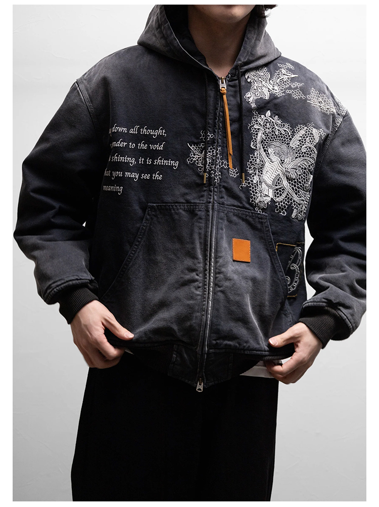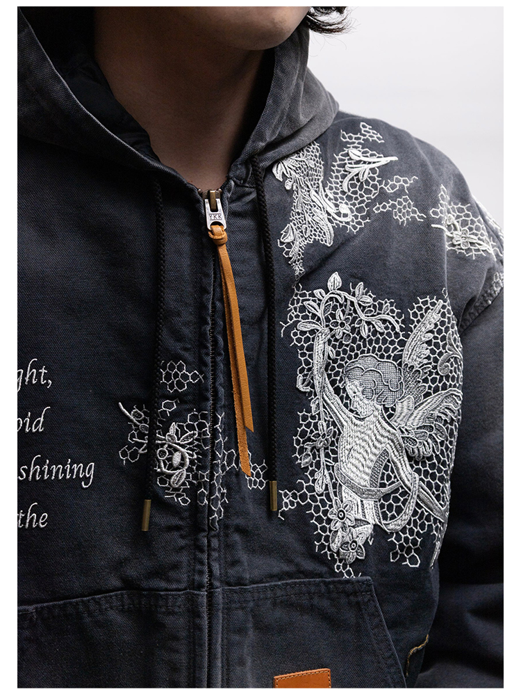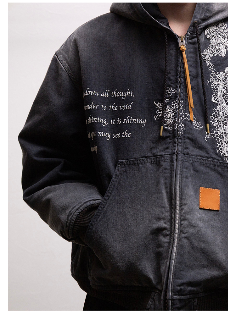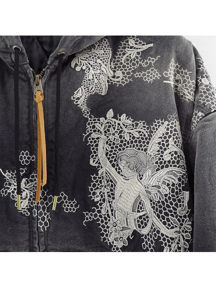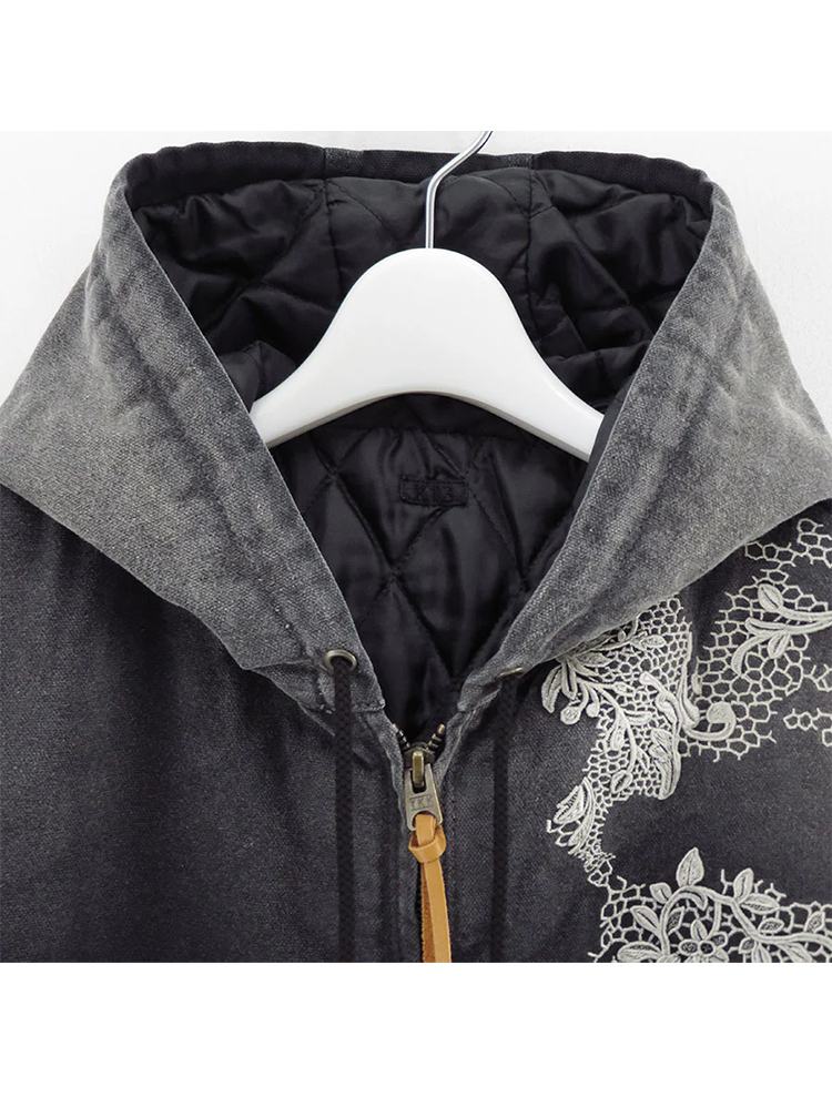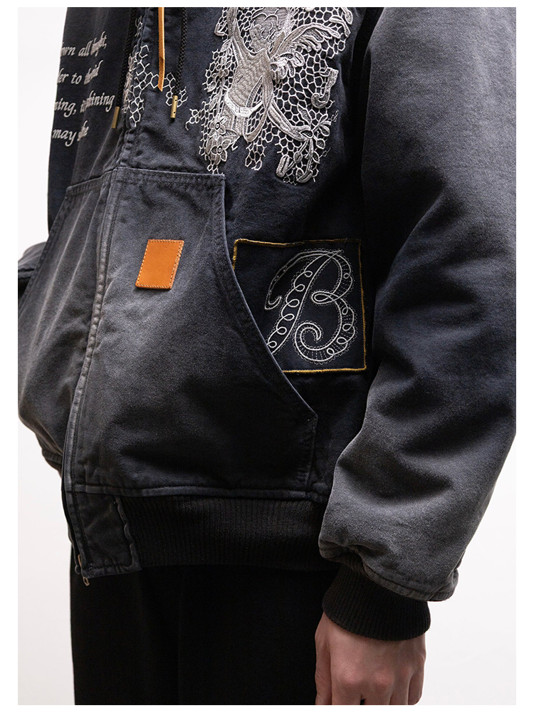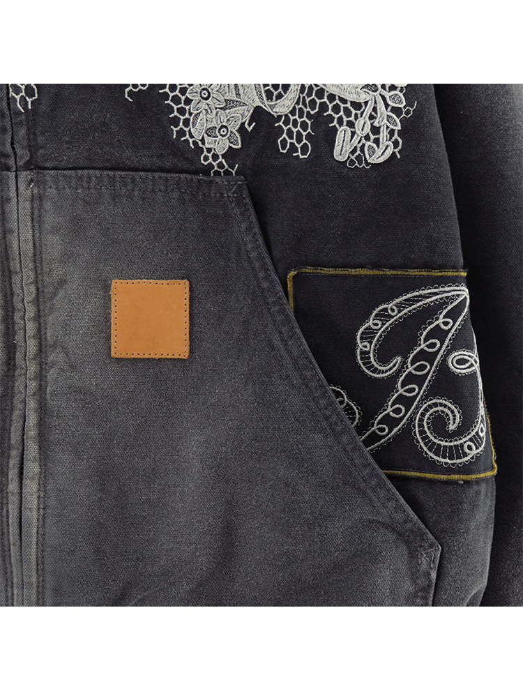 KHOKI Vintage effect embroidered 复古水洗拼接刺绣外套