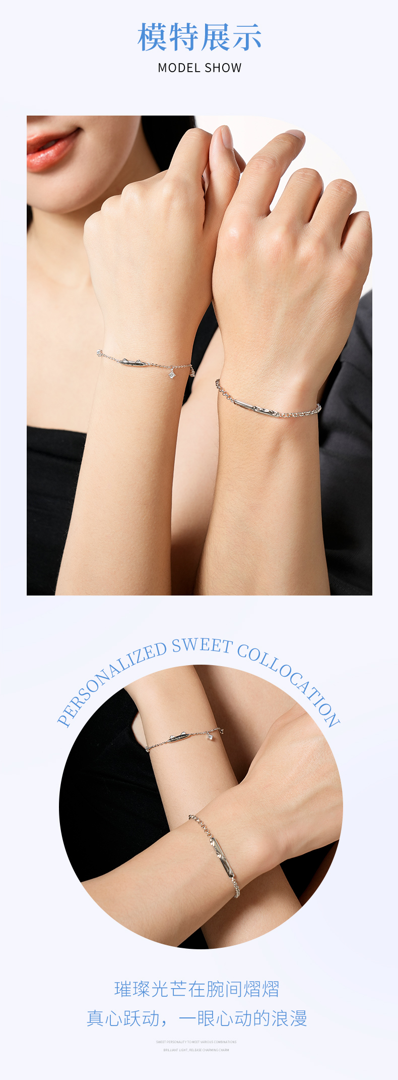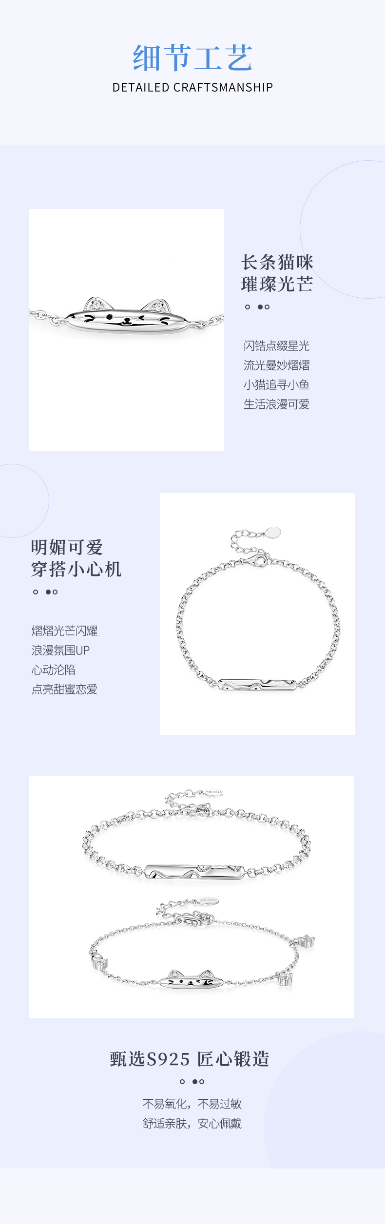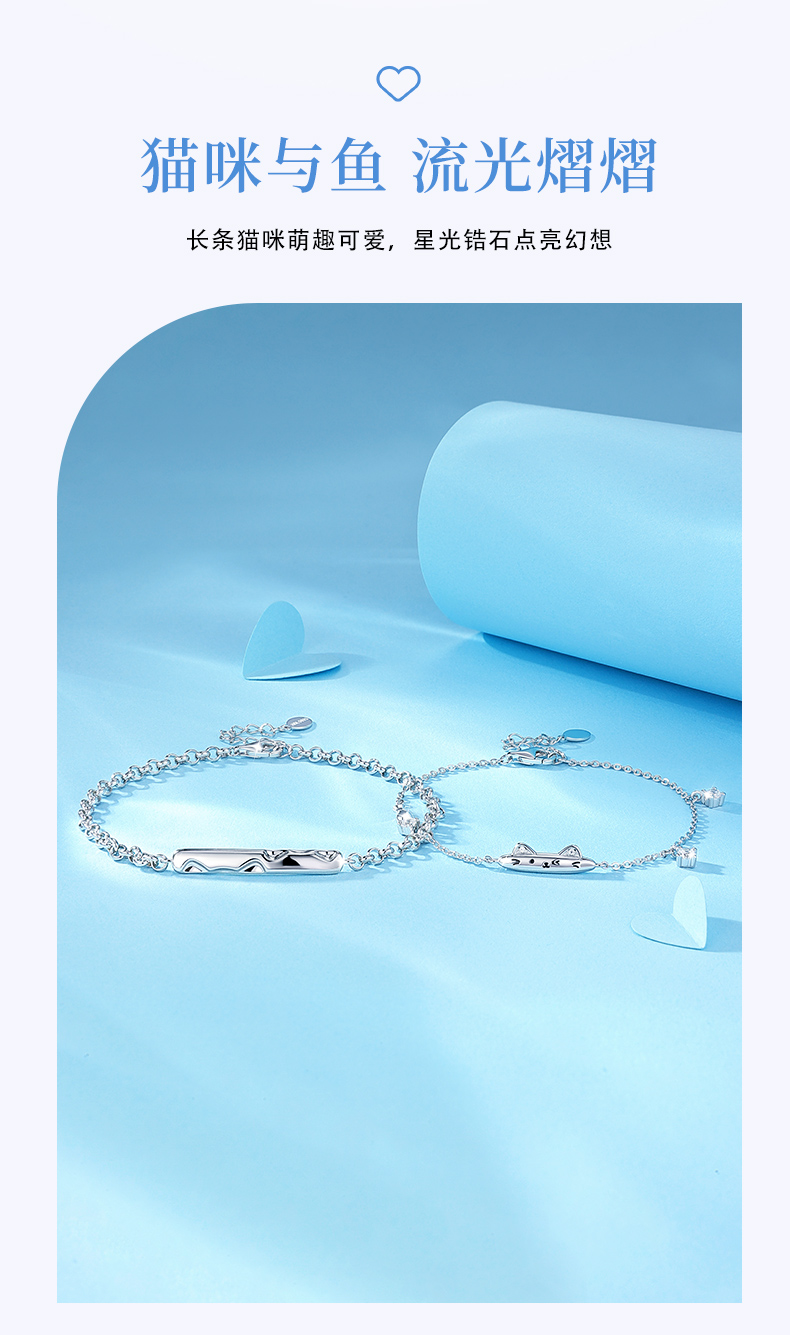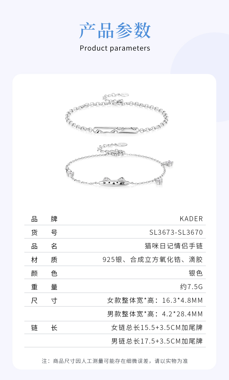 卡蒂罗/KADER 猫咪日记情侣手链 萌趣小猫wink 甜美可爱轻奢时尚原创可调节纯银一对 简约ins风恋爱频率配饰