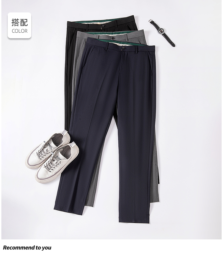 圣得西直筒休闲裤男2025新款纯色设计感弹力垂顺西裤子