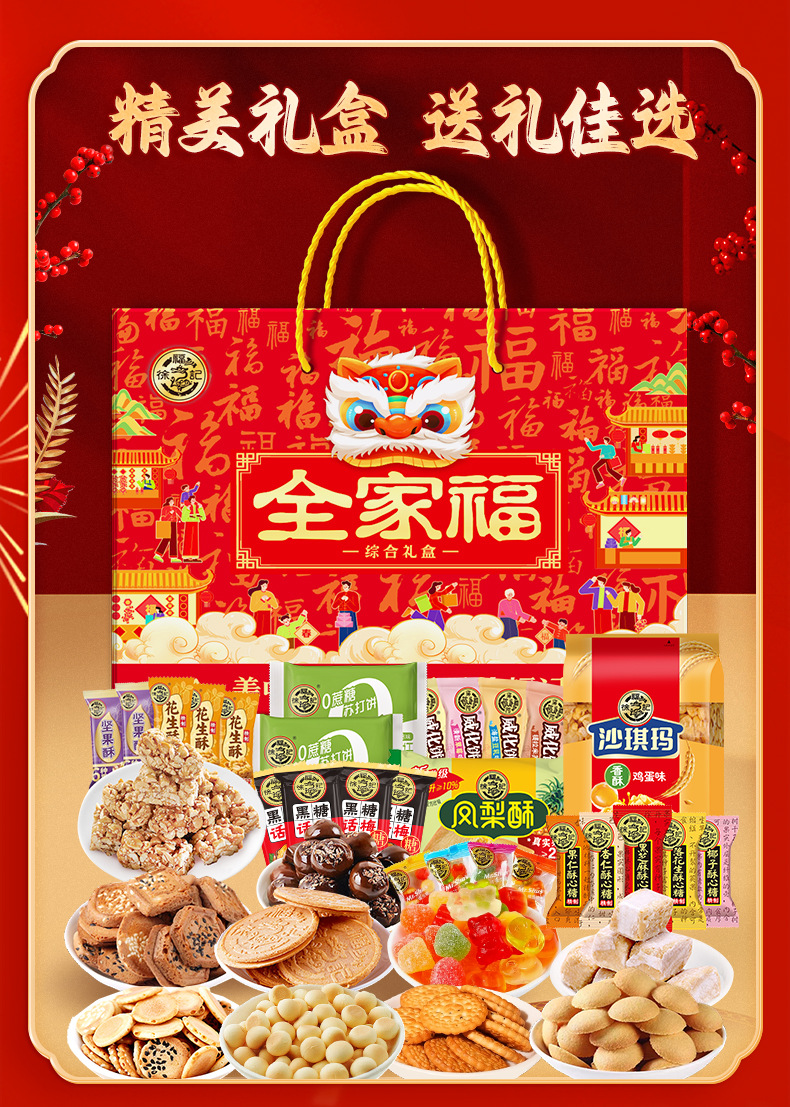【全年有福!徐福记全家福礼包】徐福记全家福礼包 蛇年饼干零食 年货大礼包 送礼礼盒