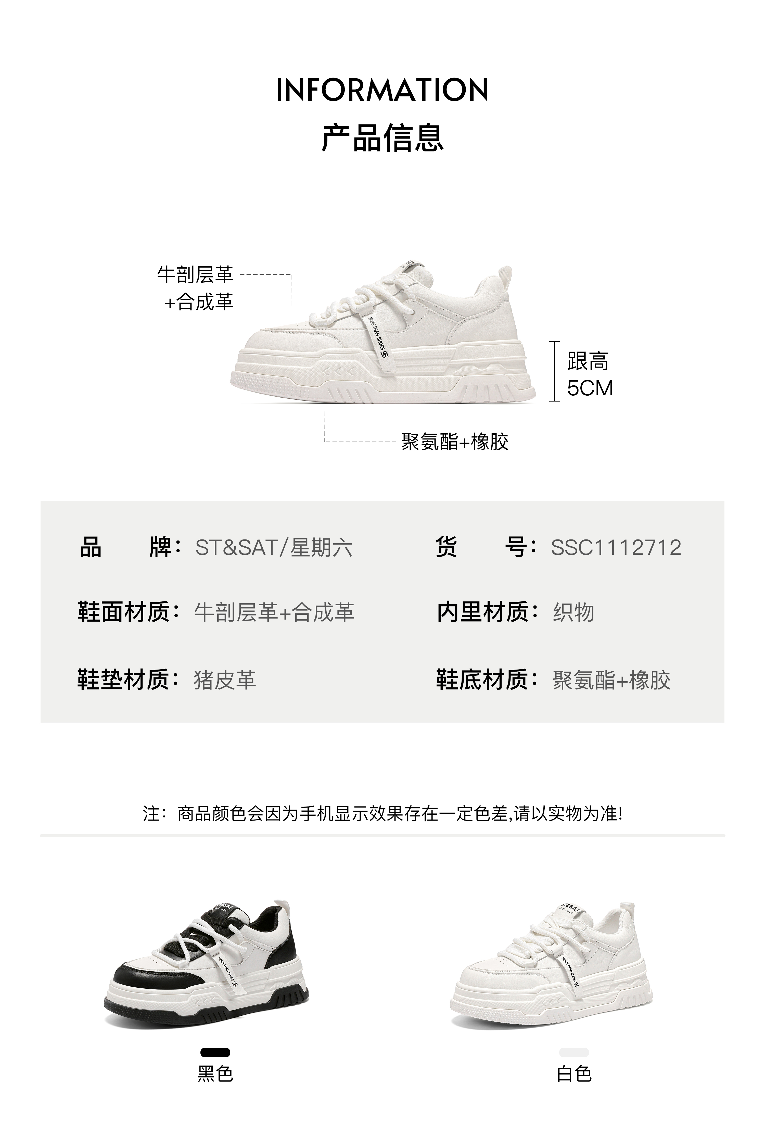 星期六黑白配色厚底熊猫鞋SSC1112712